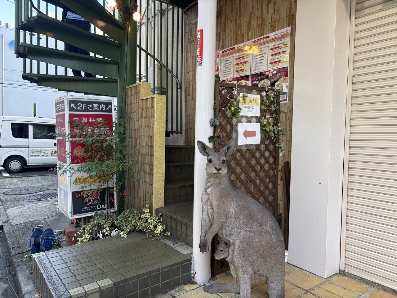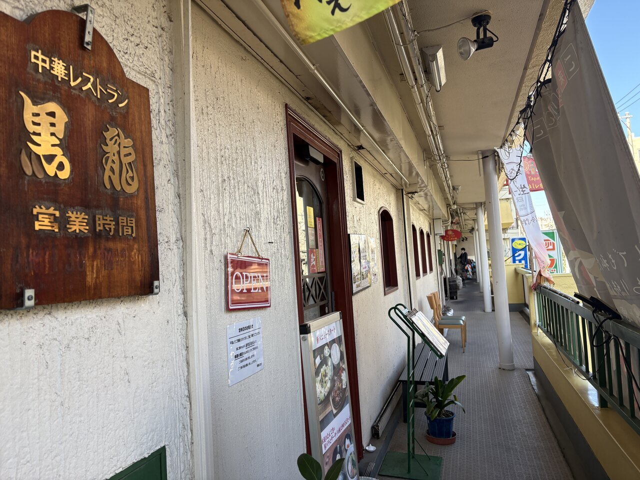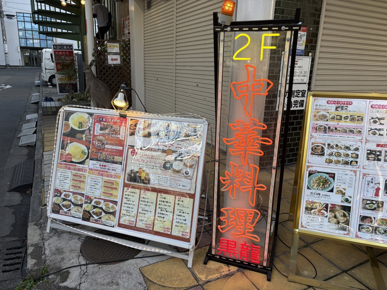 Kokuyou, located in a corner of the shopping street, has the restaurant on the second floor, but first, the storefront sign catches my eye. After checking the sign, I headed towards the stairs set up outside the building.