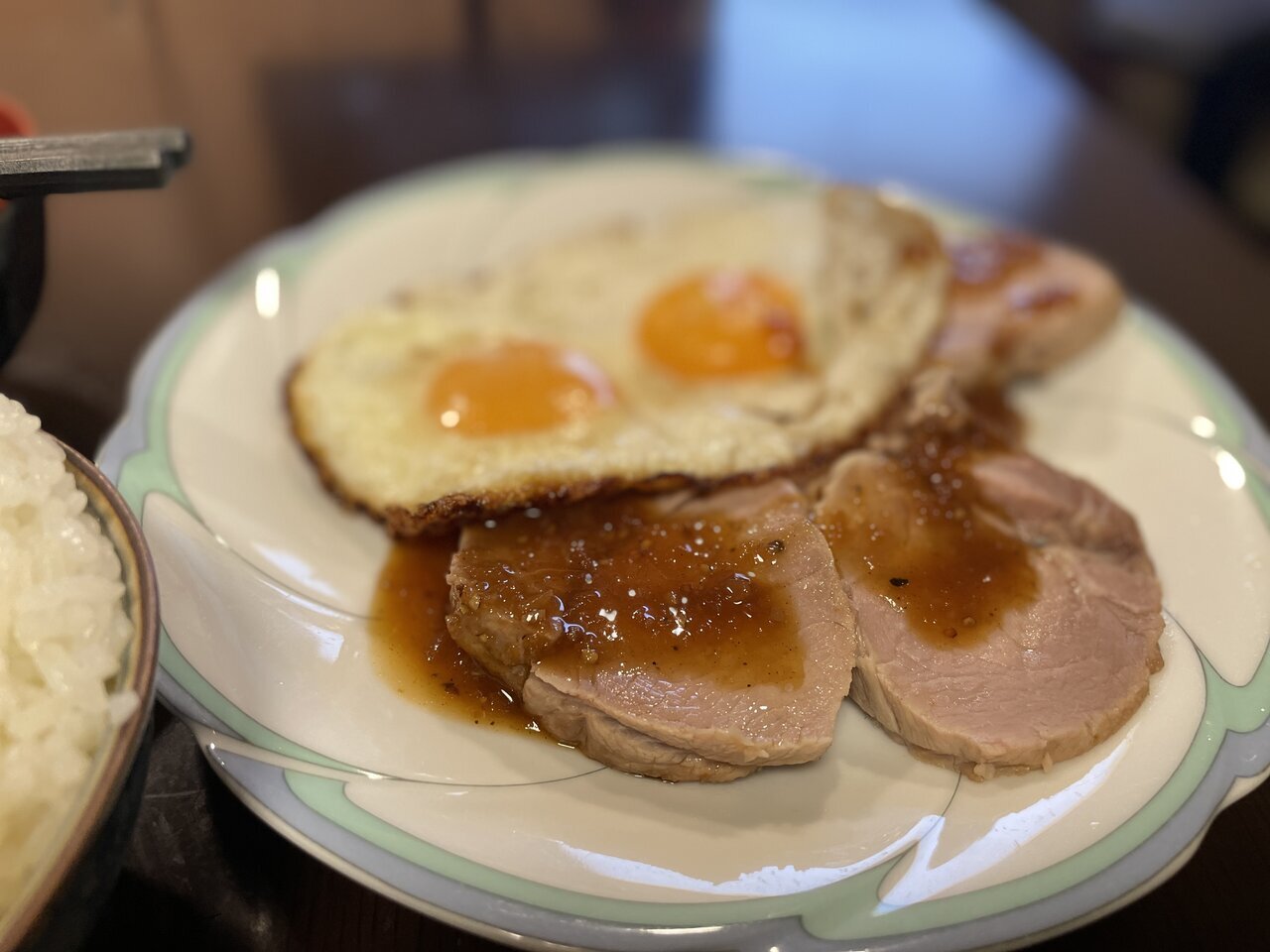 For now, I made it into ham and eggs, but it tastes more like char siu than ham. There's no meatiness, so I think that's due to the effects of the pepper and bay leaf. However, the saltiness was a bit too strong, so it seems better to reduce the draining time with the current meat size and cut.