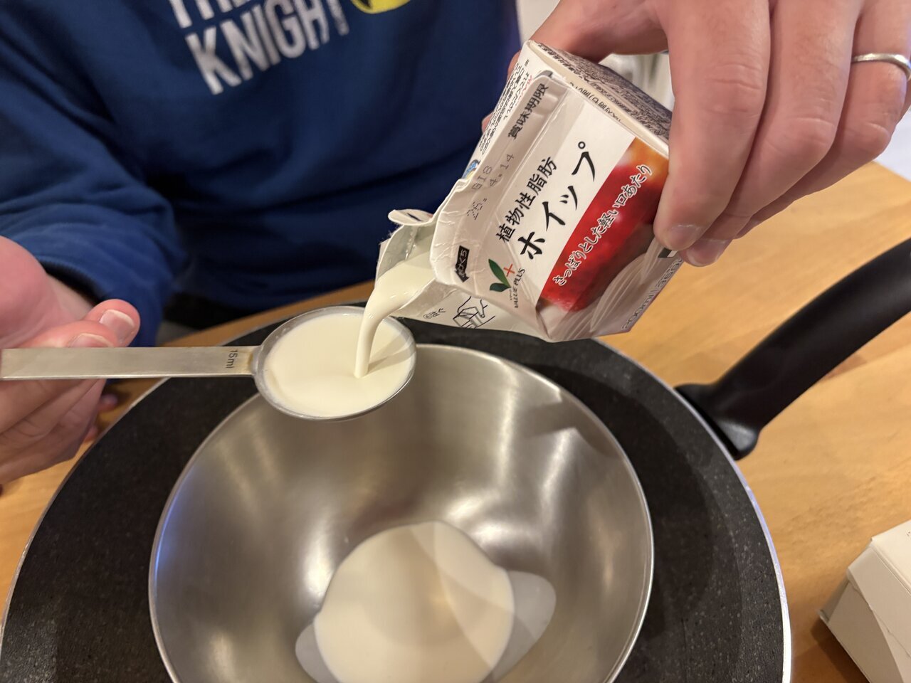 So, as long as I follow the instructions on the back of the box, I shouldn't get lost along the way. First, I started by measuring the heavy cream and putting it into a bowl.