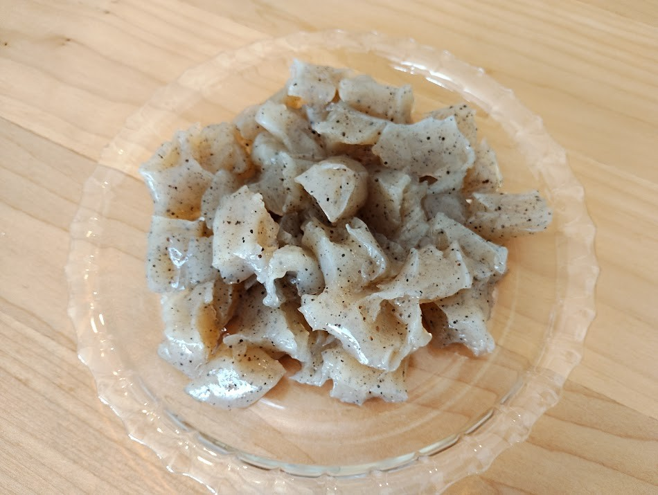 Wash the konnyaku lightly and tear it into bite-sized pieces by hand. By tearing it by hand, the surface area becomes rough, making it easier for the flavors to penetrate.