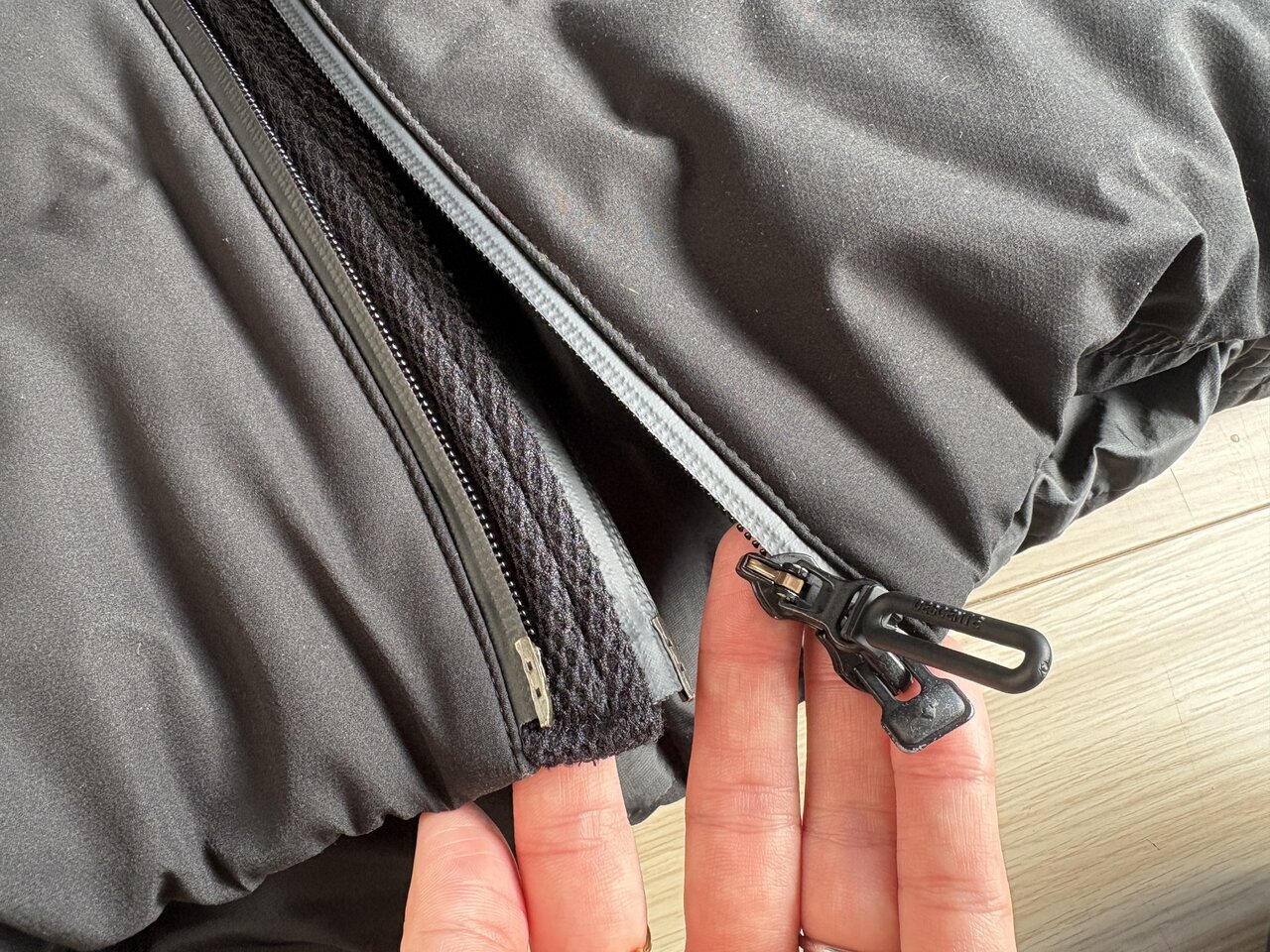 The front is equipped with a double-layered zipper, making it easy to balance warmth and ventilation depending on how you adjust it. It is designed to be suitable for scenarios where you move around while wearing it or where you remain stationary for long periods, which is a significant feature.