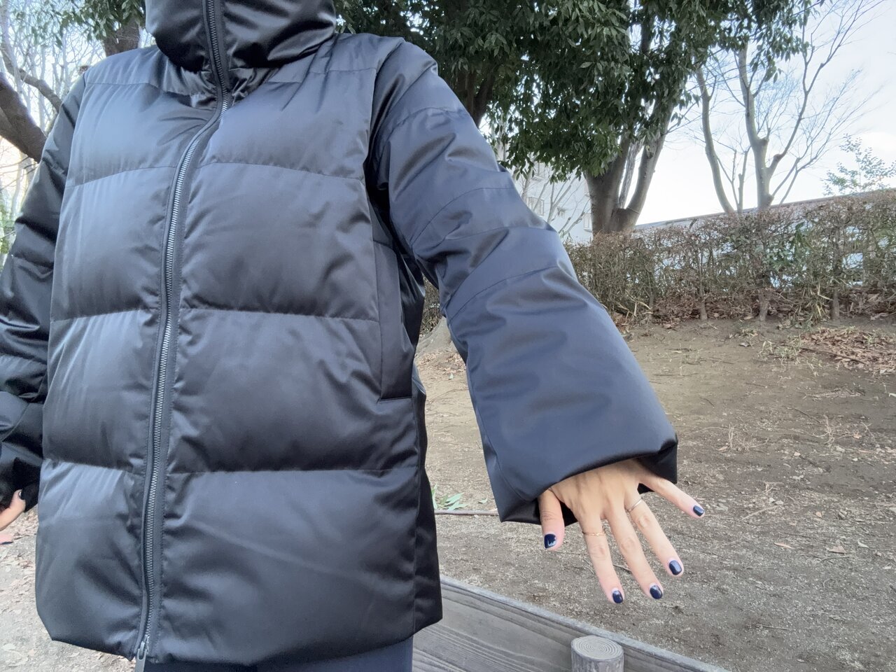 Since I started wearing this down jacket, I've reduced the amount of thought I give before going out. I've found myself less indecisive about "What should I add since it's cold today?" and this one piece solves it. My coordination is simplified.