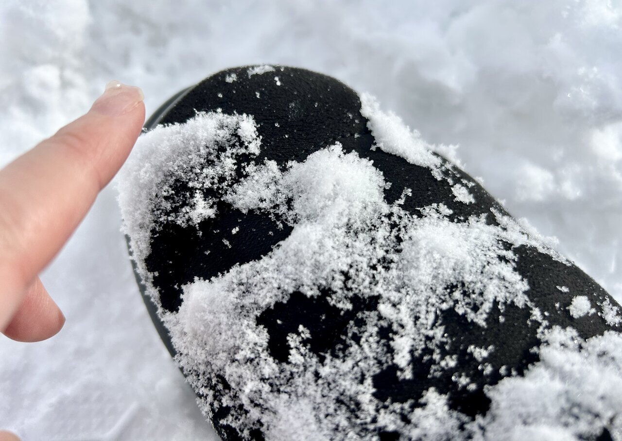 The outsole is made of rubber with deep treads. According to a friend, when there’s fresh snow like in the above photo, you can walk easily. Since I heard that advice, I was walking as usual… whoops! I was almost about to fall.