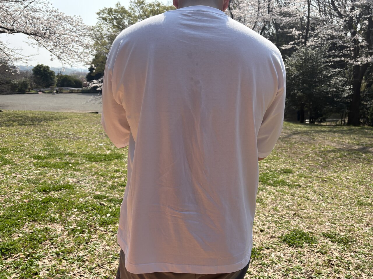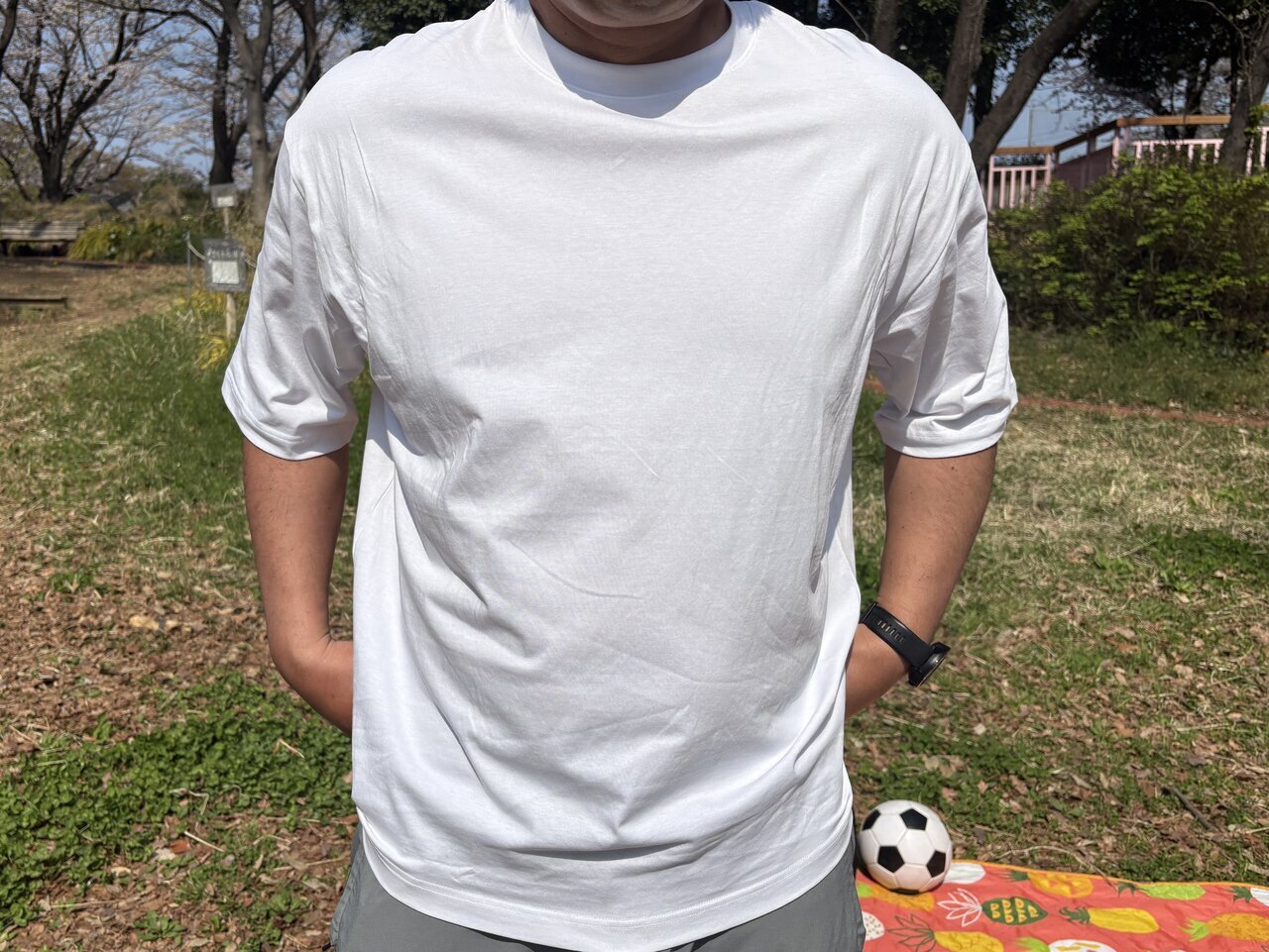In terms of texture, it completely resembles a cotton t-shirt. It doesn’t have the feel of typical functional materials and blends in naturally as everyday wear. On the other hand, the touch on the skin is a bit different from cotton. It gives the impression of "not becoming heavy even when sweating." Additionally, it doesn’t have a strong cooling sensation when new, but the differences become apparent as you wear it.