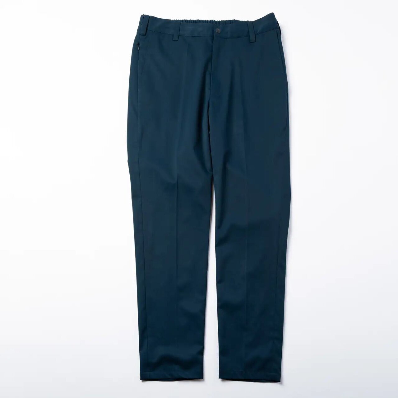 The "Biz Warm Full Length Pants" with center press offers a sophisticated atmosphere while also providing a leg-lengthening effect. They have pockets with invisible zippers, and the waist can be adjusted with a drawstring.