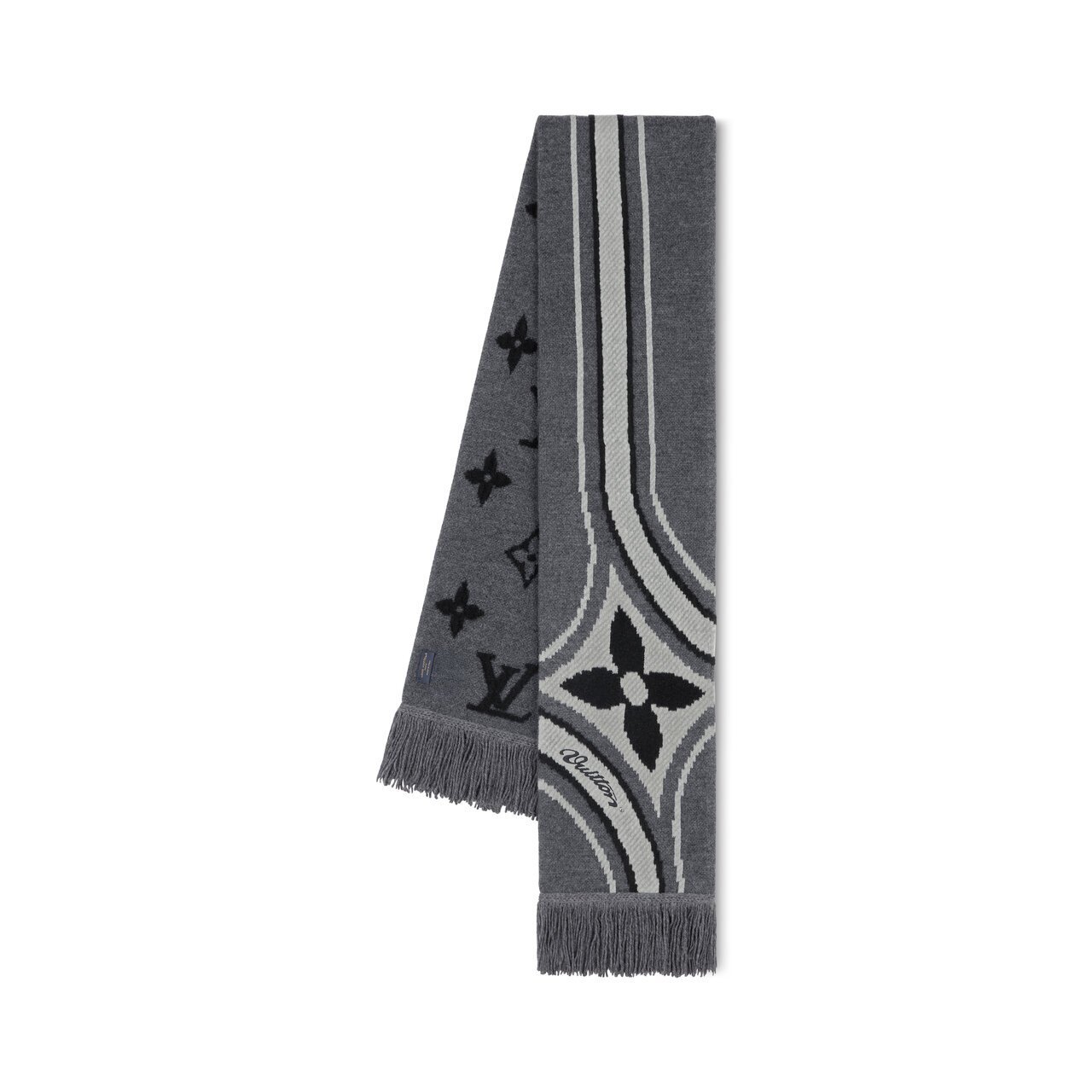 The chic gray-colored "Muffler Graphic Flower" features a design that combines black and white curves with a monogram flower. By subtly placing the handwritten-style "Vuitton" signature on the inside, it adds a refined playful touch and offers a high-quality accent to your outfit.