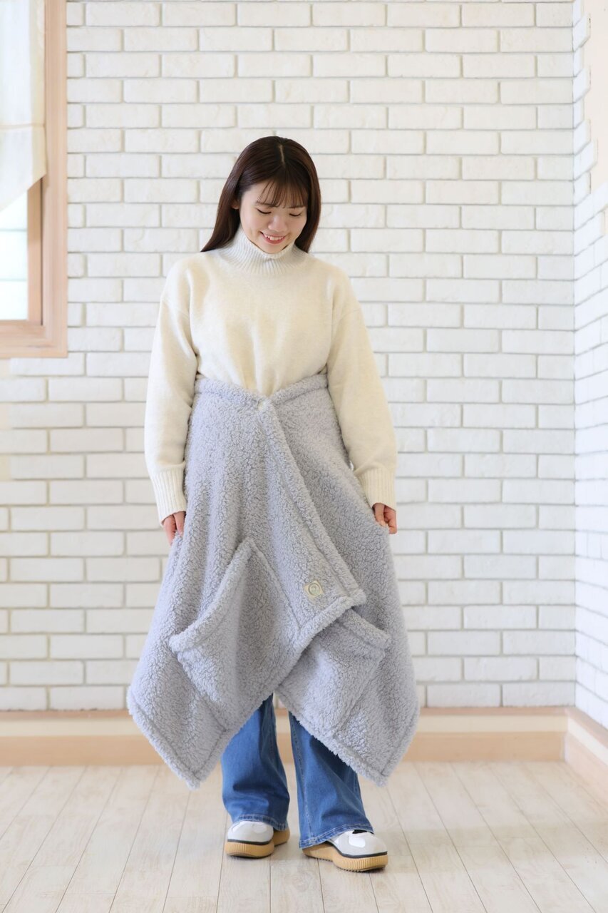 You can use it in 3 ways: button it up to wear as a shawl on your shoulders, wrap it around your waist for a warm skirt look, or spread it out as a blanket to keep your tummy warm while you nap or use it as a lap blanket. It’s not only great for relaxation time indoors but also perfect for one-mile wear for a quick outing or outdoor activities.