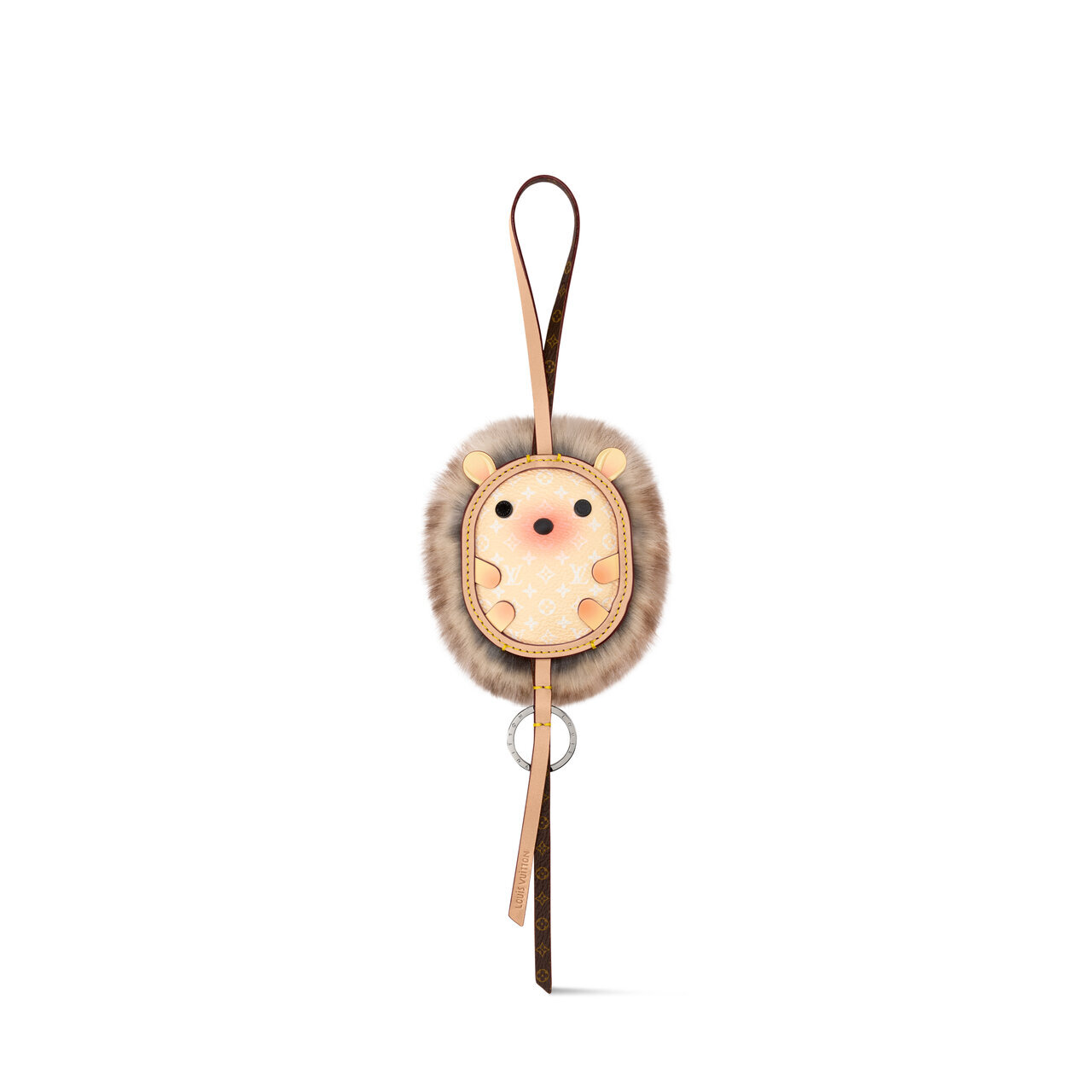 The "Bag Charm: LV Hedgehog" is an accessory inspired by a hedgehog that charmingly and chicly decorates bags, belts, and keys. From the small ears and adorable facial features to the leather strap adorned with a monogram canvas lining, the craftsmanship that symbolizes the maison is evident in every detail.