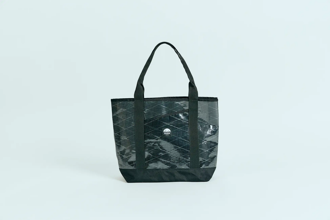 The "Recycled Sailcloth Porter Tote" is a tote bag that utilizes "Sailcloth with X-Ply," which is used for yacht sails. It is available in three sizes: 8L, 16L, and Mammoth 29L, all made from lightweight yet durable materials. It can be used widely, from daily activities to traveling.