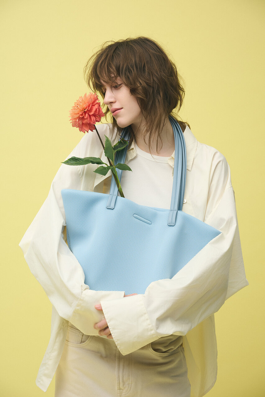 New additions to the popular tote and hobo series, which are well-supported as classics, include designs that combine double-russel mesh and leather. A three-layer structure of double-russel mesh is adopted as the main material, achieving an astonishing lightweight of about 280g for the mesh tote. It also offers excellent breathability, allowing for a comfortable experience in the spring and summer seasons.
