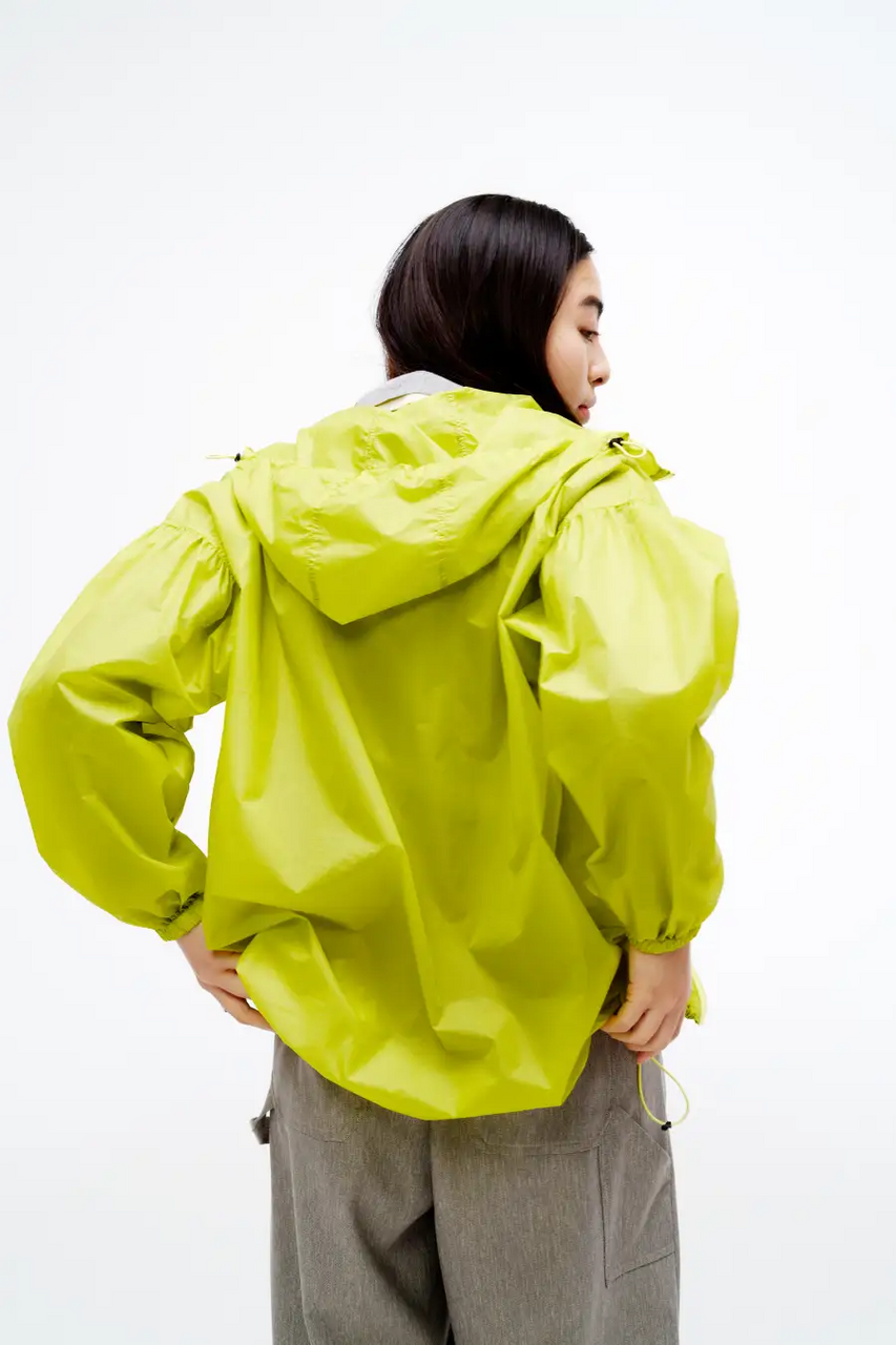 There are days in spring where you won't be wearing your jacket for long. That's why how you carry it becomes important. The "SHEER JACKET" has an inner pocket that doubles as a storage bag. It can be folded down small, so it won't get in the way when you're on the go.