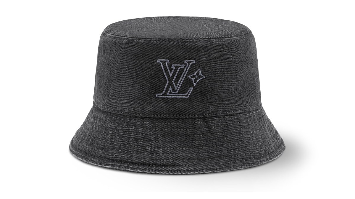 First to check is the "Bucket Hat - LV Flower Washed". Made from cotton with a used finish, it has a texture that makes it seem like it has been loved for many years. The embroidery of the LV initials and monogram flower is in a soft gray, making it subtly sophisticated for adults. Even with a simple outfit like a T-shirt and denim, this single piece adds depth.
