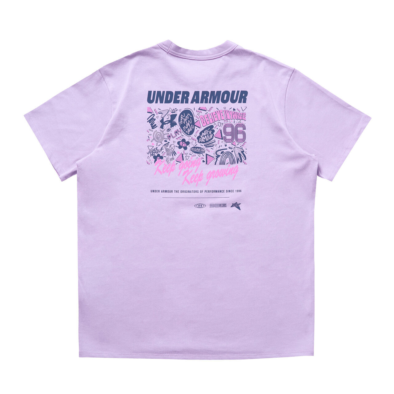 For women's wear, UNDER ARMOUR presents a lively piece incorporating 90s-style handwritten lettering and geometric patterns. Champion's sticker-inspired design is playful, evoking the culture of "decking out" with stickers and patches.