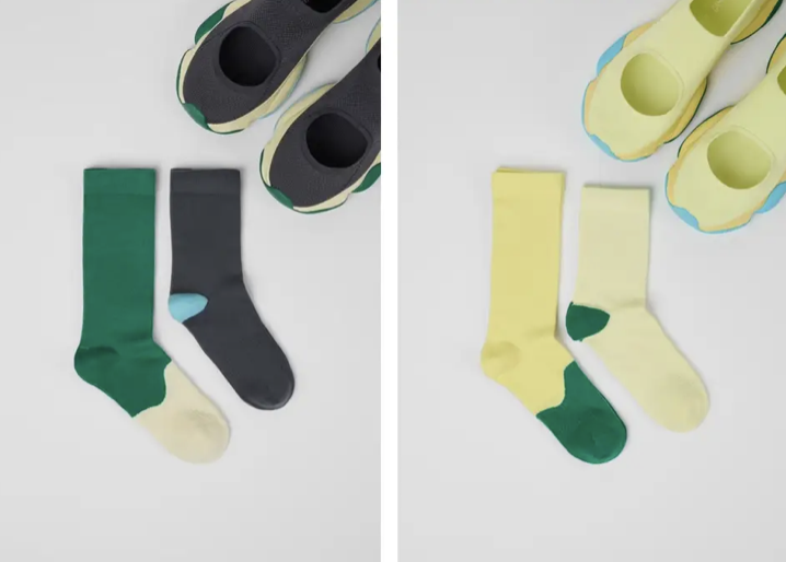 The color variations include urban and sophisticated gray, light yellow, black, and light beige. Each shoe comes with two pairs of socks in matching or contrasting colors, allowing for fun and creative combinations.