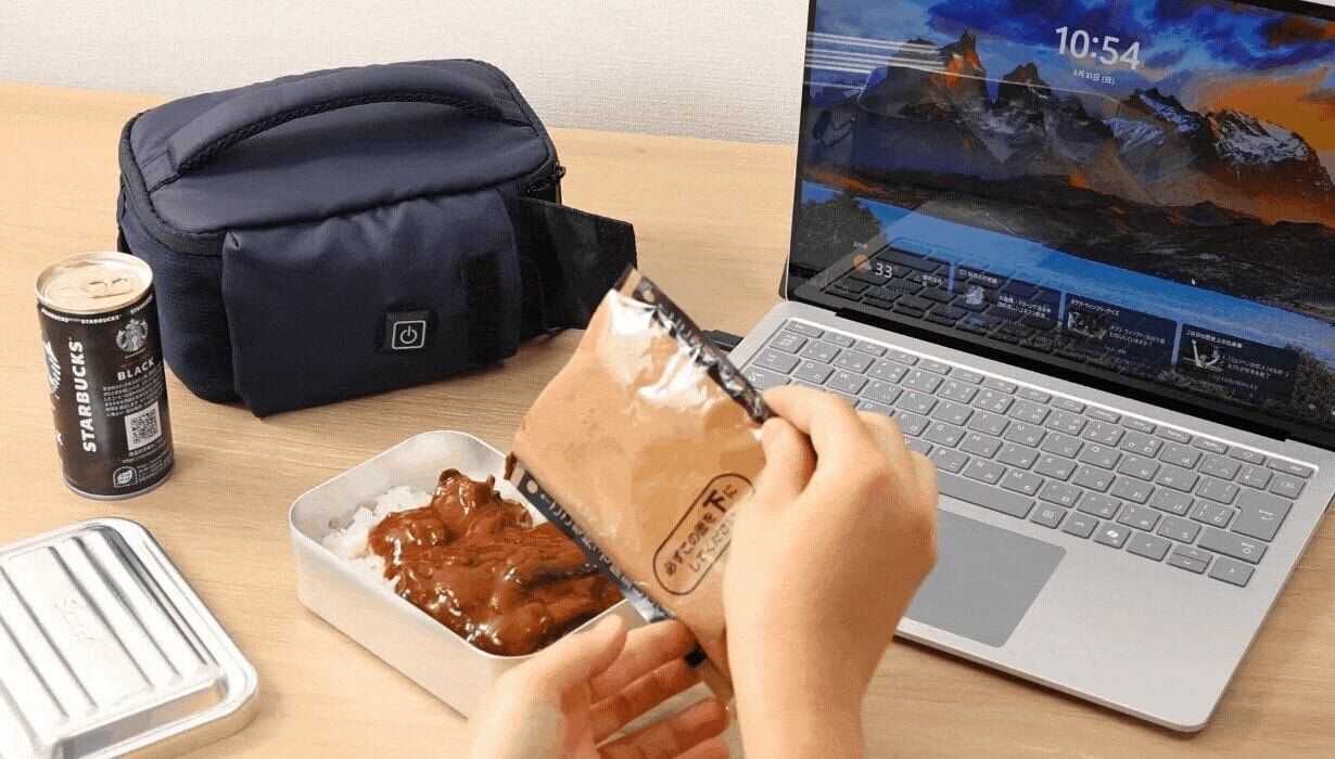 Even during the cold winter, with the "portable microwave-style pouch," you can always have a warm meal. Even without a microwave or pot, it heats up the top, sides, bottom, and the entire unit through USB power from a mobile battery or power adapter. The temperature can be set at three levels: about 40, about 50, and about 60°C. It can maintain the perfect temperature for delicious meals.
