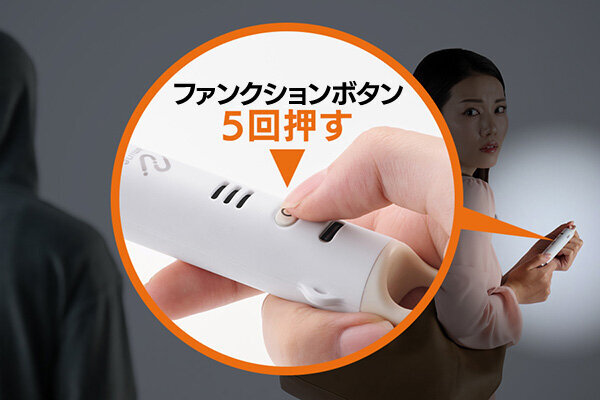 Additionally, pressing the function button five times in succession activates the "Silent Reporting Function (buzzer silent & light off)," allowing you to report without drawing attention from those around.