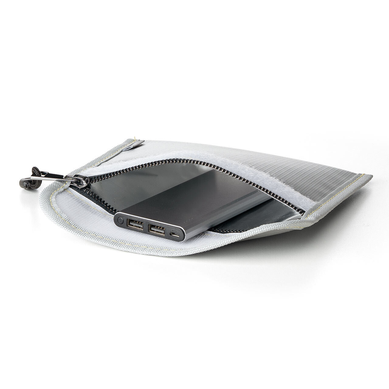 Sanwa Direct's new product, the "Flame Retardant Mobile Battery Case," is designed to prevent flames from escaping during emergencies. It uses a special material that blocks heat and fire, minimizing damage. It was created from the idea of adding smartness to safety, rather than just putting heavy items inside a case.