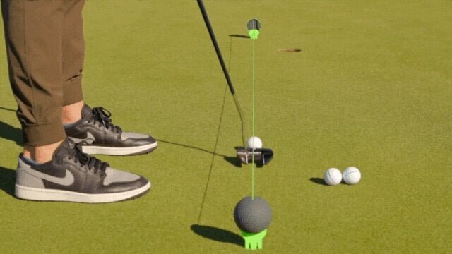 The photo shows how the "Alignment Ball" is used; it allows you to visually confirm if your setup is aligned along the line and whether your address and face orientation are correct. This seems like it could help improve habits that you may not have realized.
