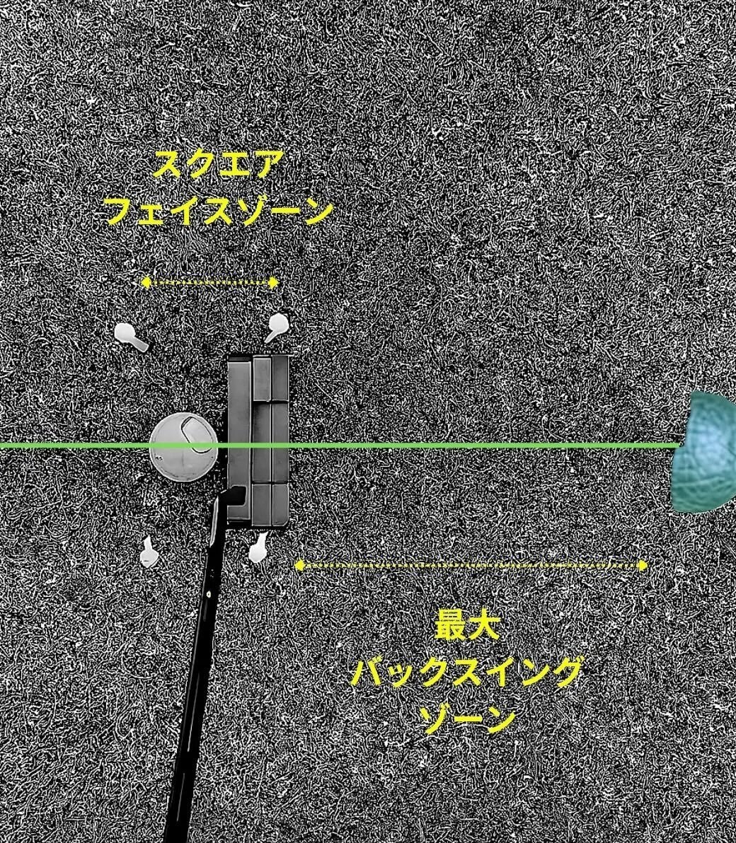 What does that mean……? Upon researching, I found out that the hemispheres are connected by a string, so when placed at regular intervals, the string forms a line indicating the correct trajectory. In other words, it fulfills the desire to practice by drawing lines on actual grass. This is a brilliant idea.