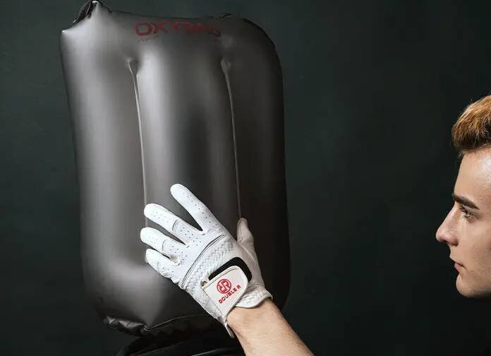 "OXYBAG" creates a layer of air cushions inside the caddy bag to protect the head and shaft of the club with air. Traditional club protection items have primarily focused on partial protection, such as head covers and hard cases. However, "OXYBAG" features a structure that surrounds the entire club with a "wall of air".