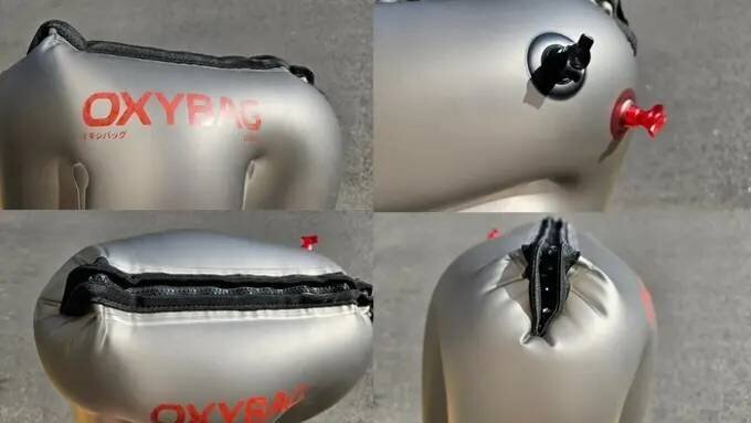 Set contents: OXYBAG x 1, dedicated electric pump x 1 set (digital automatic pump, extension hose, air injection nozzle, ball needle nozzle, wrist strap, 2 lock caps, charging cable, manual)