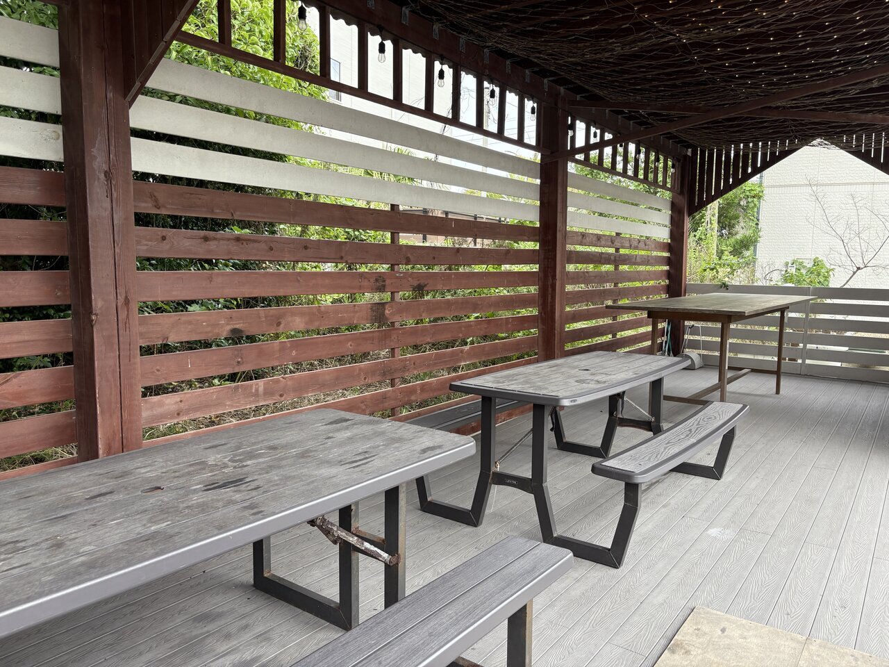 The "Stay Ocean Tateyama" we visited this time is a large vacation rental renovated from a former pension. It's about a 10-minute walk to the sea, with a huge wooden deck for BBQs, and in summer, you can enjoy playing in the pool at this location where we stayed with a total of 19 people, including parents, sibling families, and children.