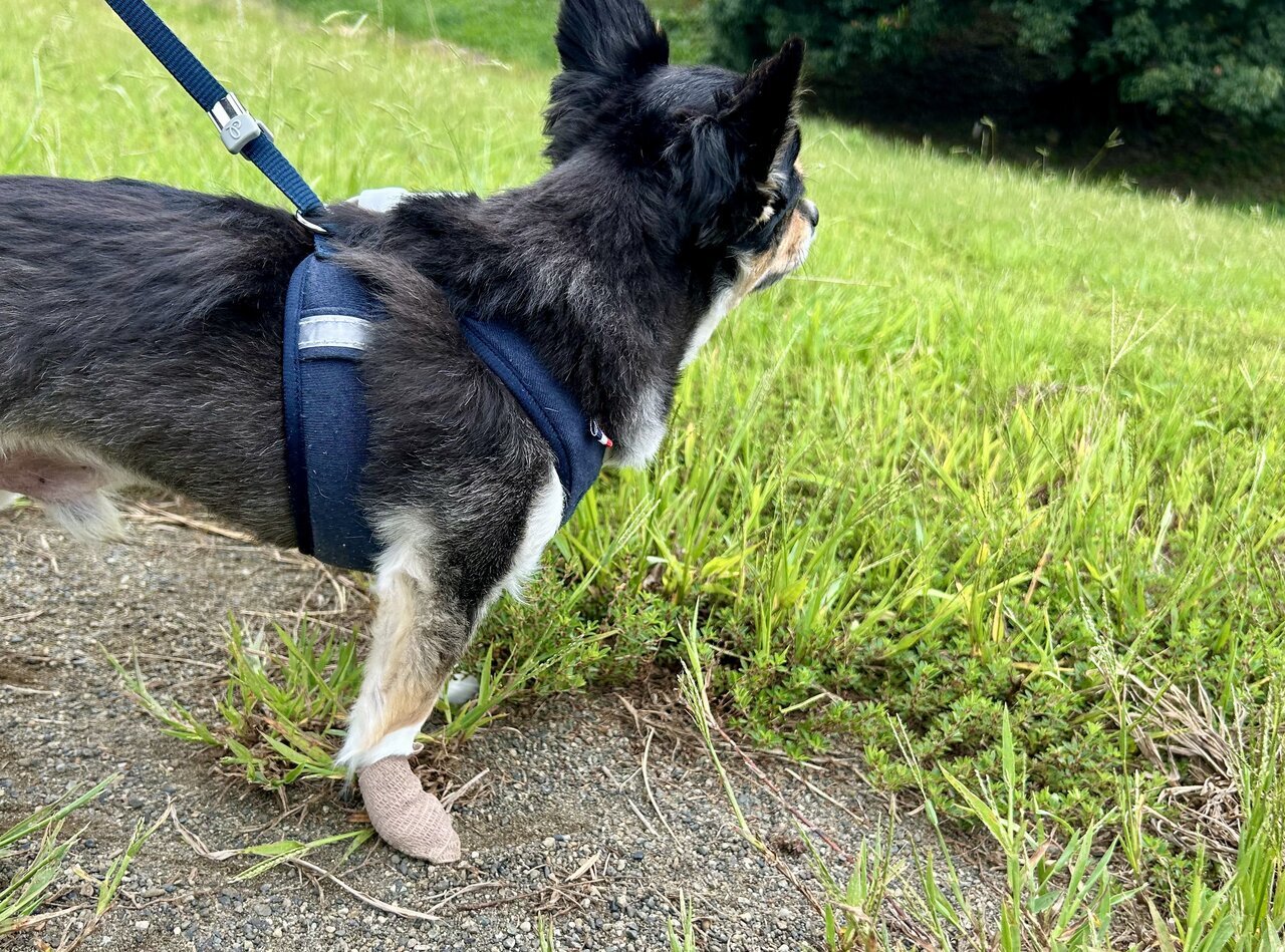 After using the disposable roll shoes, they can be simply pulled off. They are not waterproof, so they do get wet, but because mud doesn’t stick to them, post-care is significantly easier compared to not wearing anything. Although I often walked only on less muddy roads on wet days, since starting to let my dog wear the disposable roll shoes, I’ve been able to walk him on mud without stress. He can walk freely, and he looks happy.