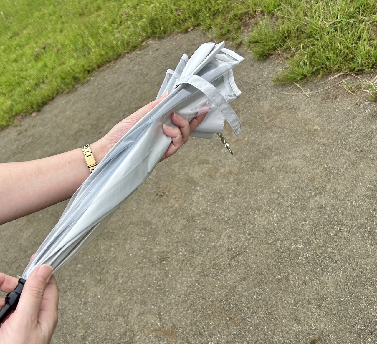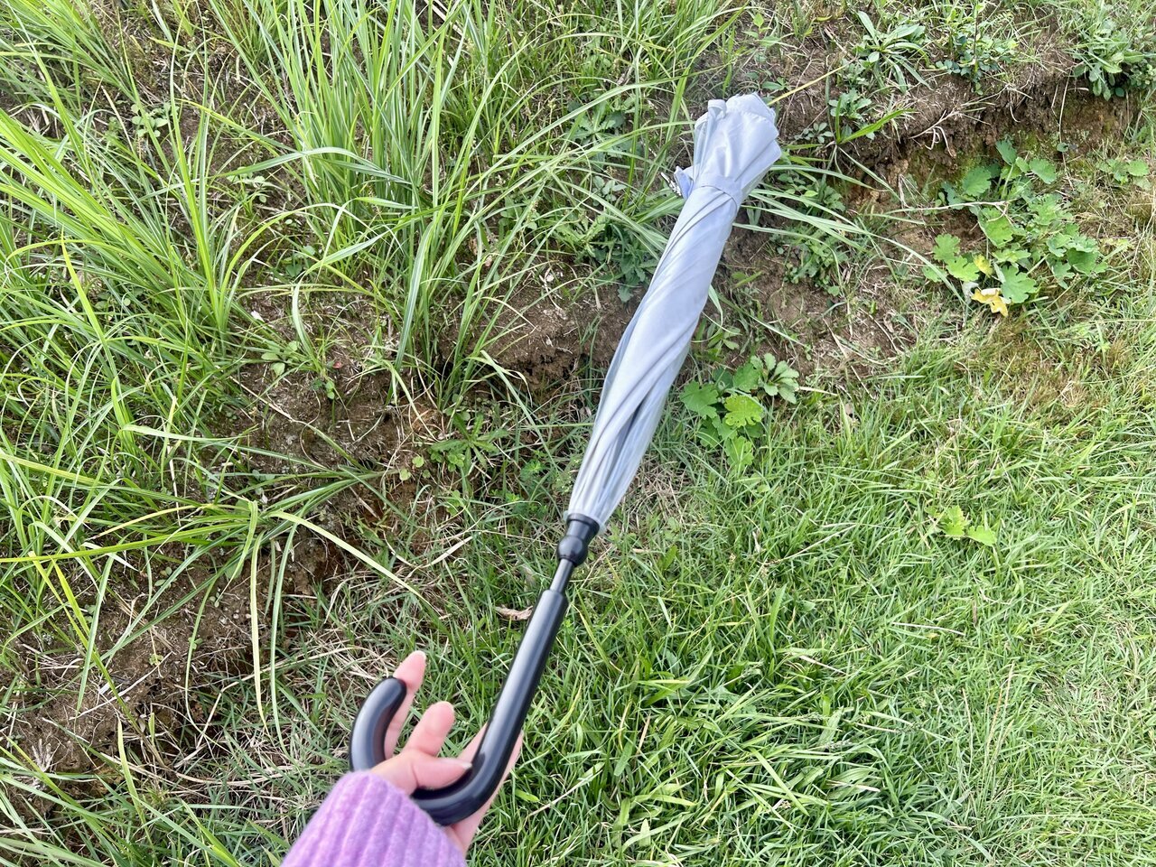 The walking umbrella can be compacted just like a regular umbrella. Since the handle can be hung on the hand, it’s easy to carry smoothly if the rain stops along the way.