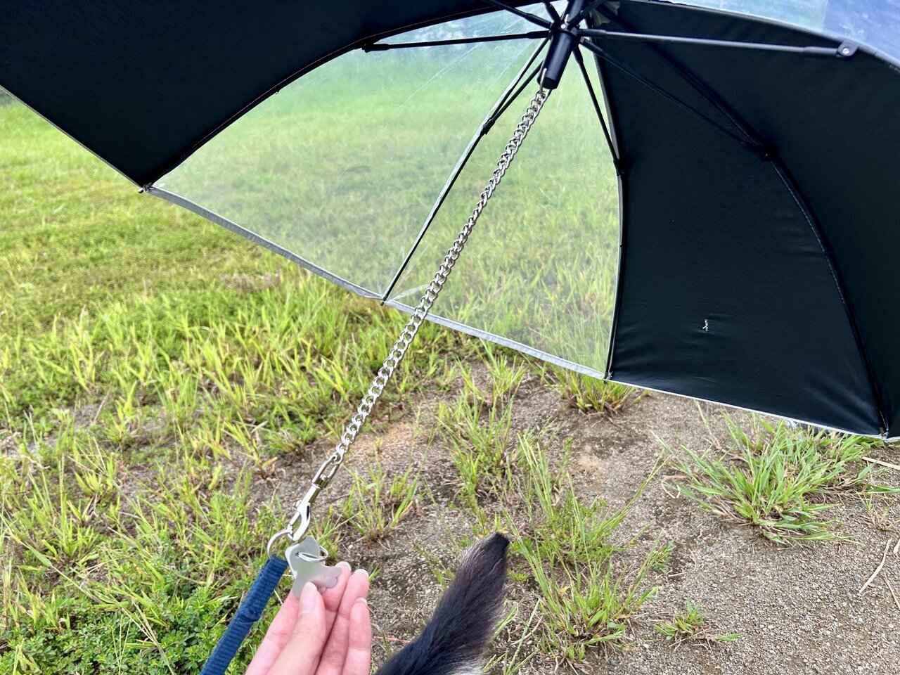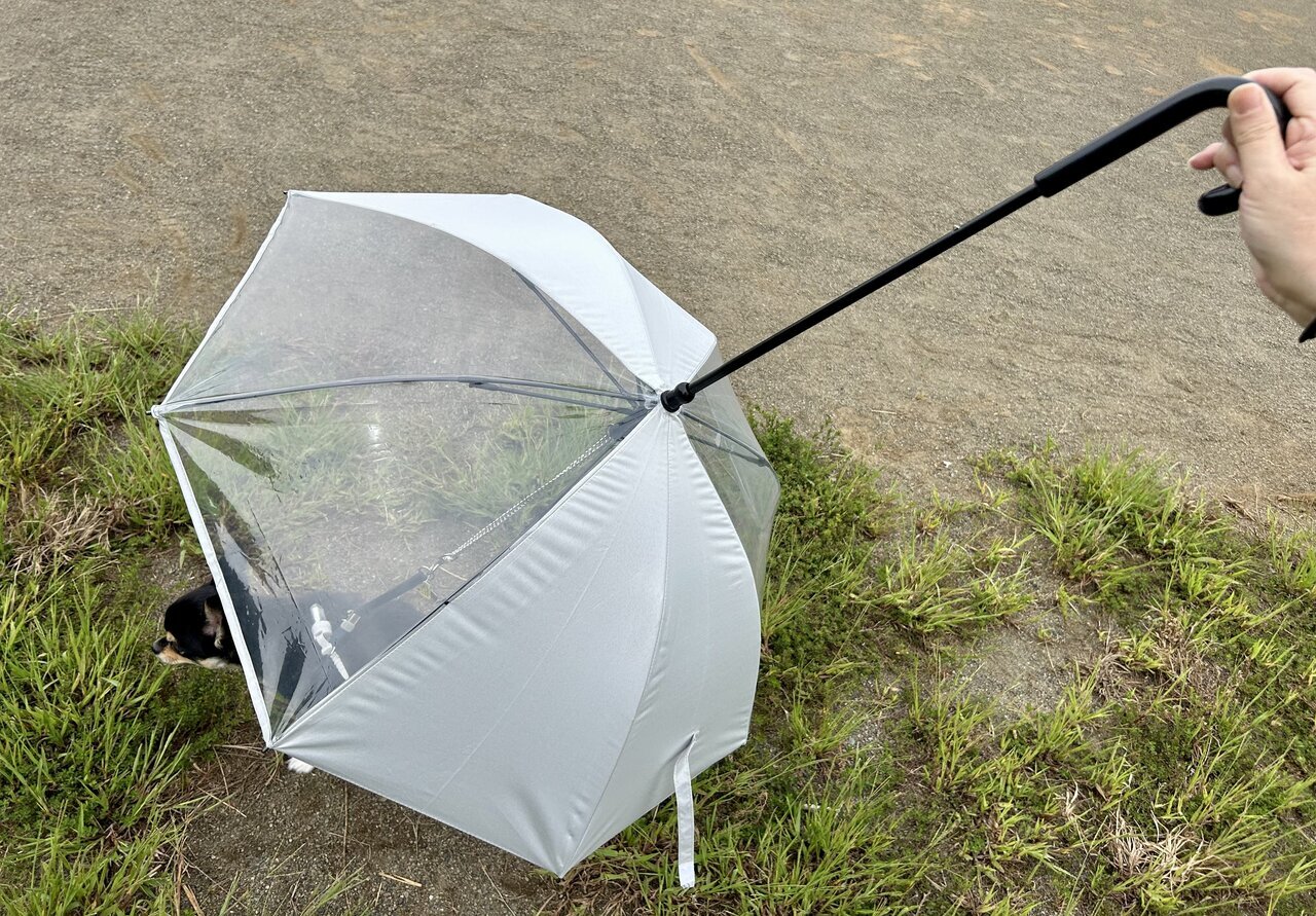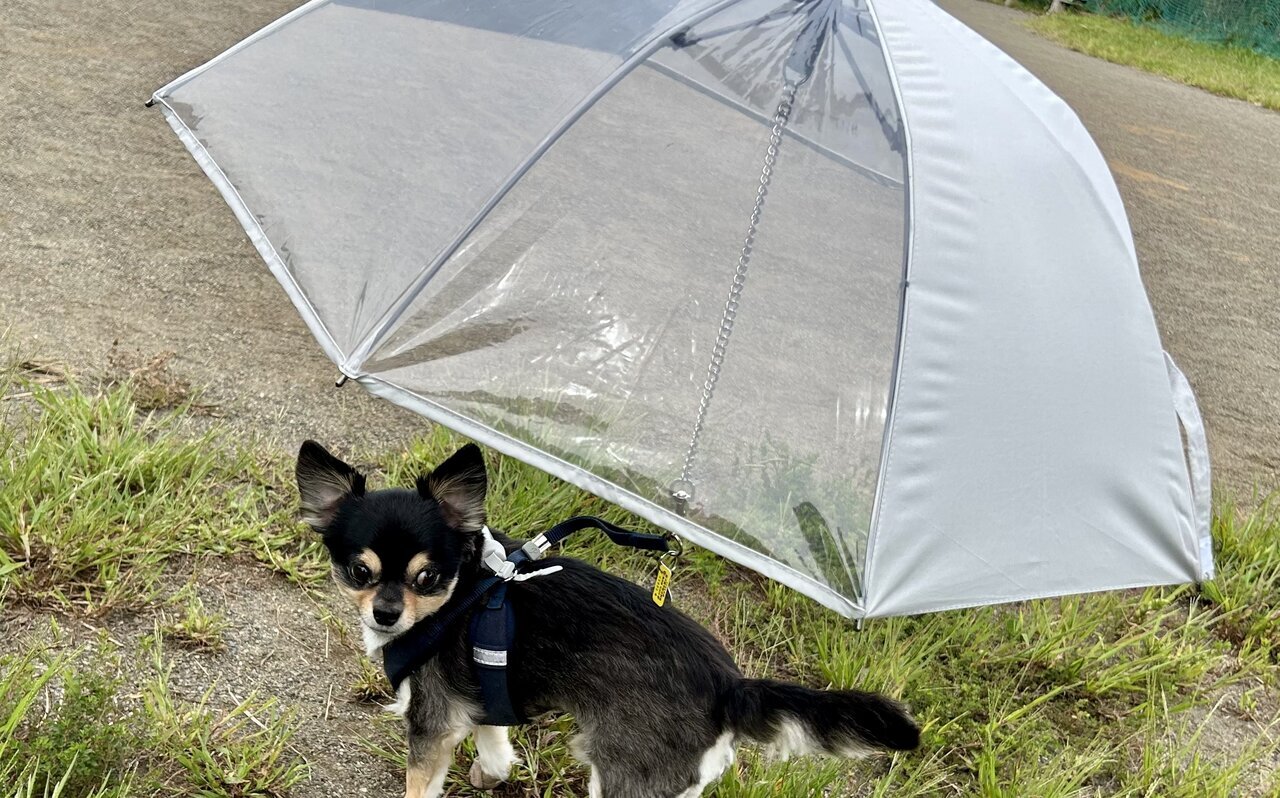 My dog is a large Chihuahua weighing 4kg, but this walking umbrella has a diameter of about 73.5cm, making it large enough for us to walk without getting wet.