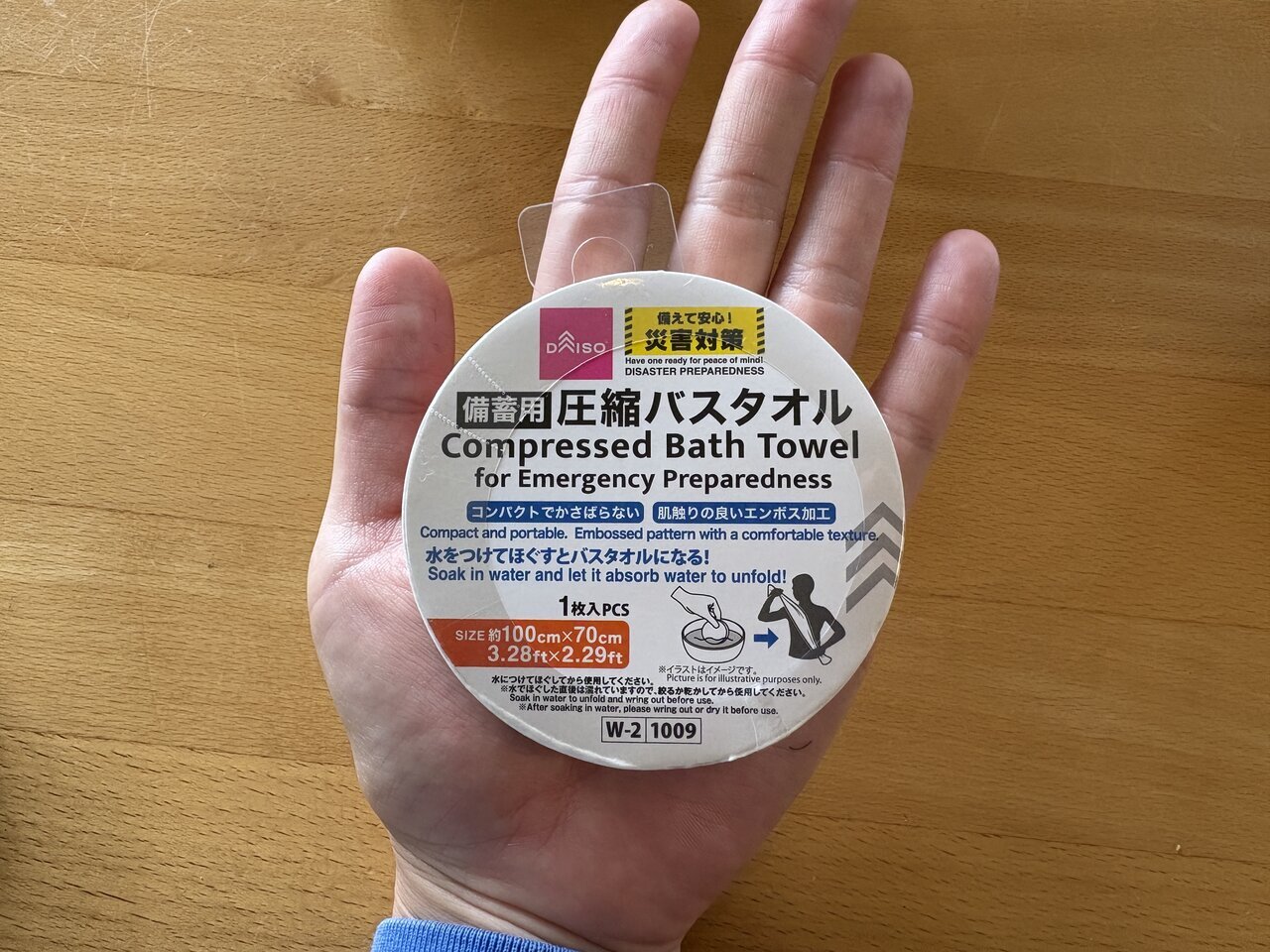 Because disasters can happen at any time, I want to be prepared for various situations to protect my family when the time comes. I uncompressed and actually used Daiso's "compressed towel," "compressed socks," and "compressed bath towel" to verify their usability and practicality.