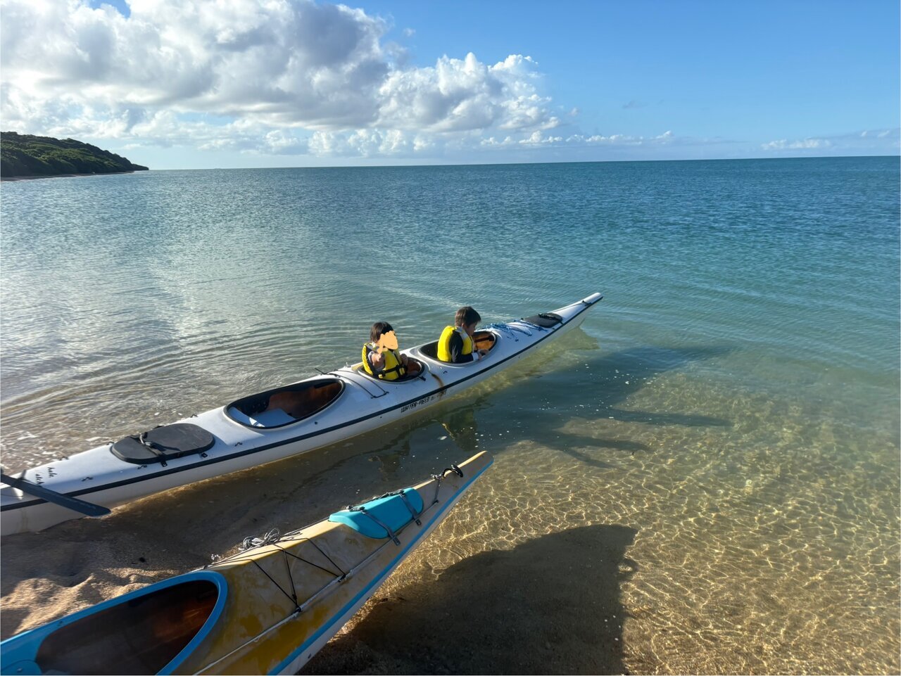 I booked the sunset kayak through the hotel. My 4-year-old and 5-year-old children also participated, and the experience of paddling out into the sky and sea dyed orange became unforgettable.