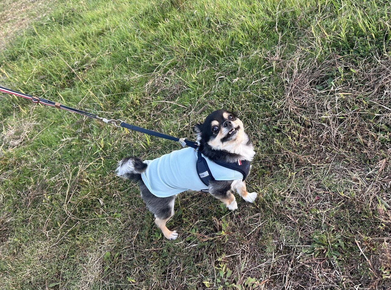 No matter how quietly we talk, our beloved dog always reacts to the word "walk." He shows such a joyful expression while out for a walk that we often end up walking until it gets dark at dusk. With sunset times getting earlier, there are times when it's pitch black by the time we get home.
