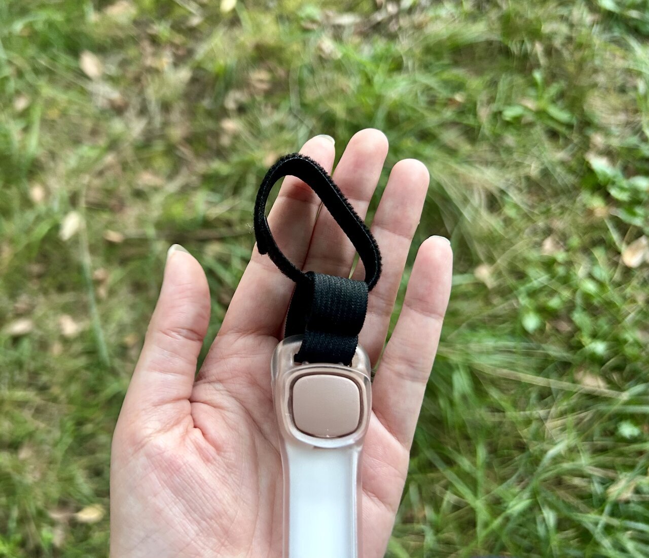 That’s why I got the "walk light" from Three Coins. It measures about 18.5 cm long, which is a size incomparable to the lights I've used before. It is designed to be attached to a leash or collar. The light has two modes: steady and flashing.