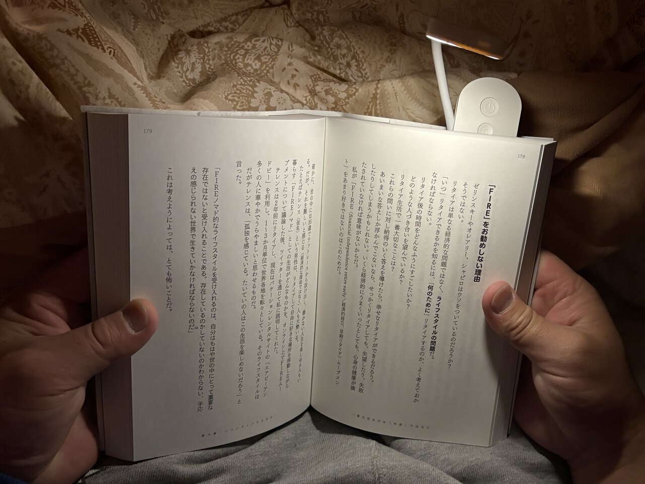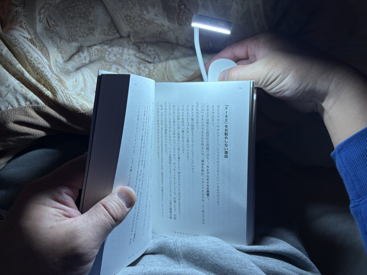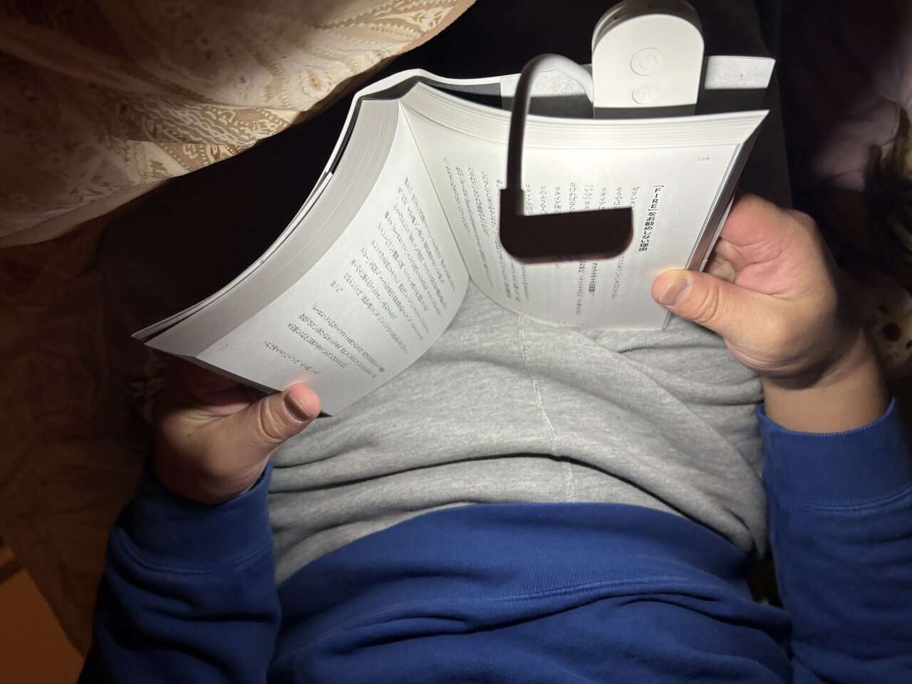 There’s no need to hold the light by hand or adjust the angle; whether lying on my back or on my side, I can continue reading while changing my position. Since the angle can be finely adjusted, it’s hard for shadows to fall on the pages, and there were almost no moments where I had to stop reading to correct my posture.
