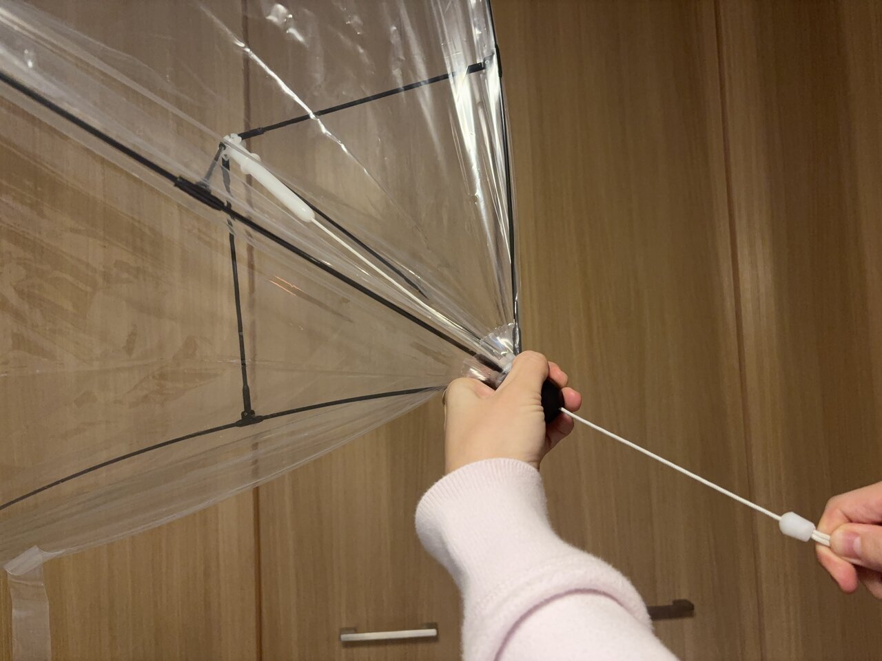 This umbrella-like Daiso's "Sauna Feeling in the Bath." When actually using it, you just hold it upright, pull the string to open it, and place it on the edge of the bathtub. It doesn't take time to prepare, and if opening it feels like a hassle, you can stop midway. Since there's no need to go out and move around, and you can set time limits, for the first time, I thought, "This might be something I can continue as a habit."