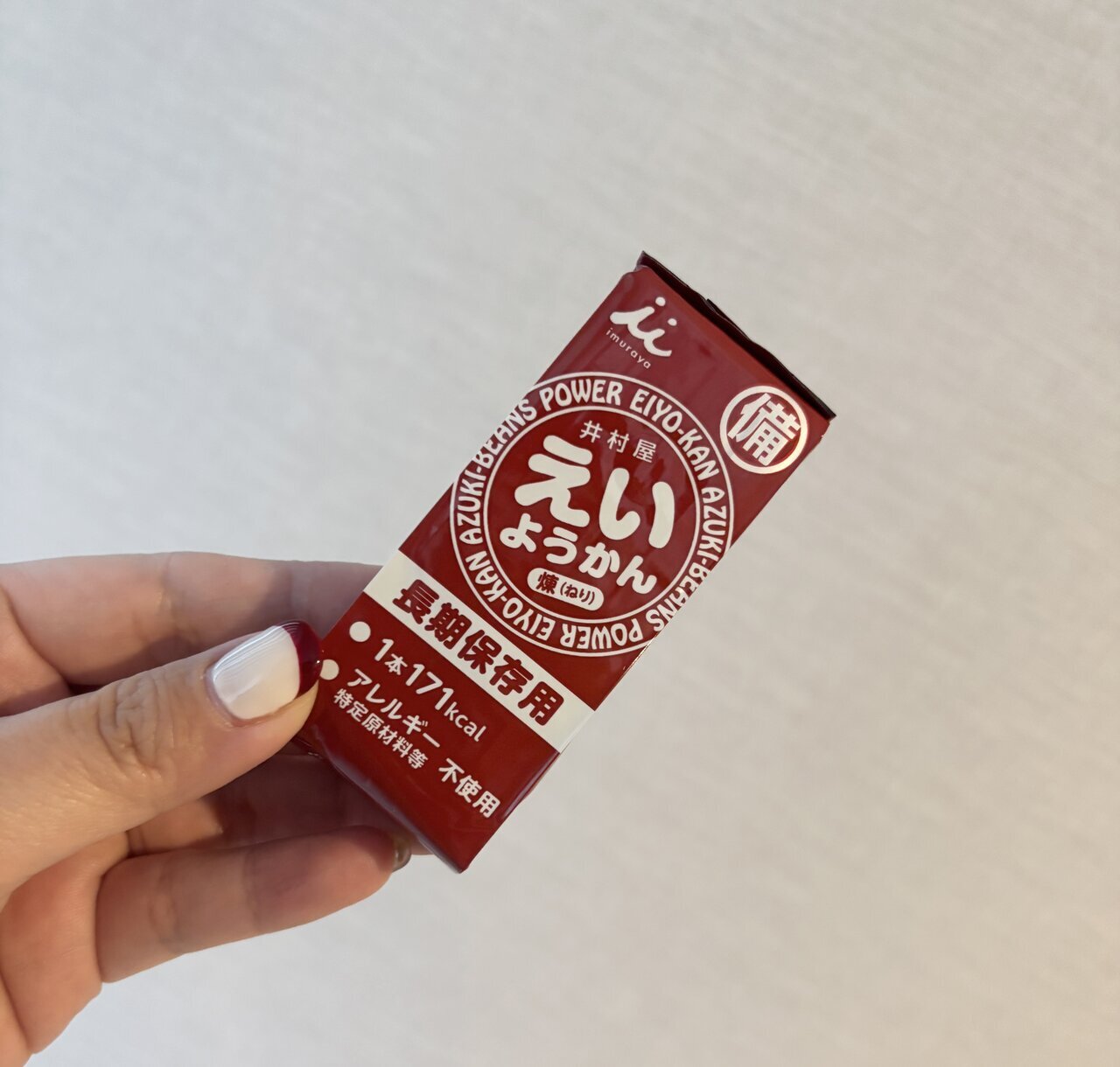 What the author has in their bag is Imuraya's "Eiyoukan." It's packed with energy, providing a convenient 171 kcal (equivalent to a small bowl of rice) with just one stick.