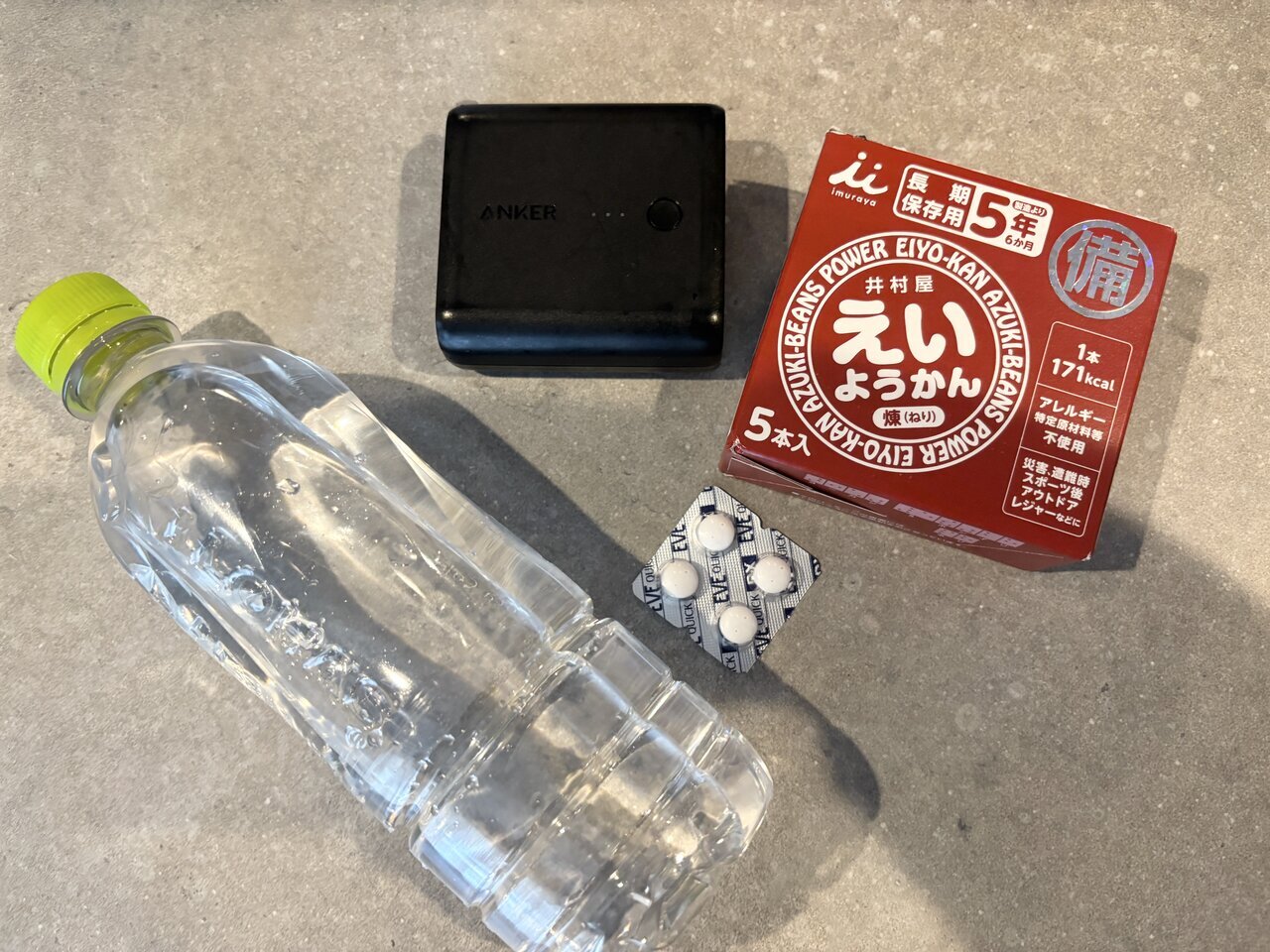 Many recent elevators are equipped with emergency kits, but some may lack them or have insufficient quantities… In case of such situations, it's reassuring to keep a minimum amount of water and non-perishable food in your bag. If you find 500ml bottles to be heavy, smaller capacity bottles in the 200ml to 300ml range, which can be purchased at convenience stores, are also recommended.