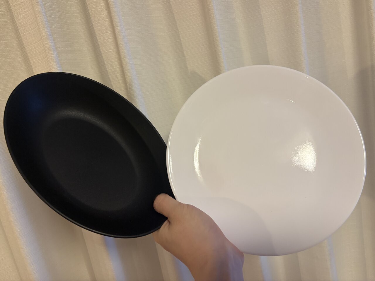 When sauce or oil spreads, it seems to blend into the black of the plate, sometimes creating a somewhat heavy impression. Because the visual changes are significant, it may be a matter of preference.