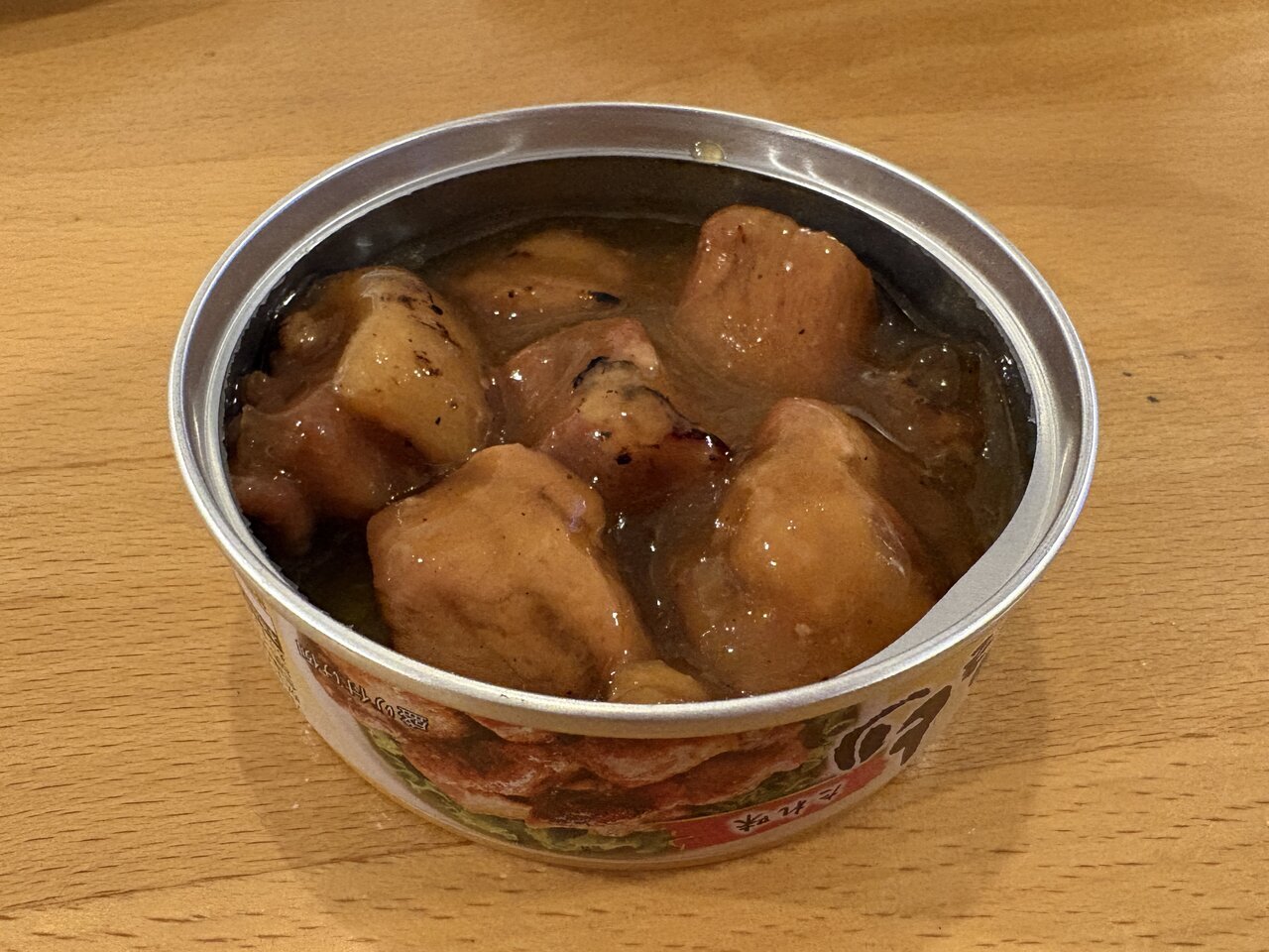 With the canned yakitori, simply plating it makes the shine and texture clearly visible, contributing to the sense of an actual meal. The thickness of the sauce and the color of the grill marks become more discernible, giving a better impression as a dish compared to when it’s still in the can.