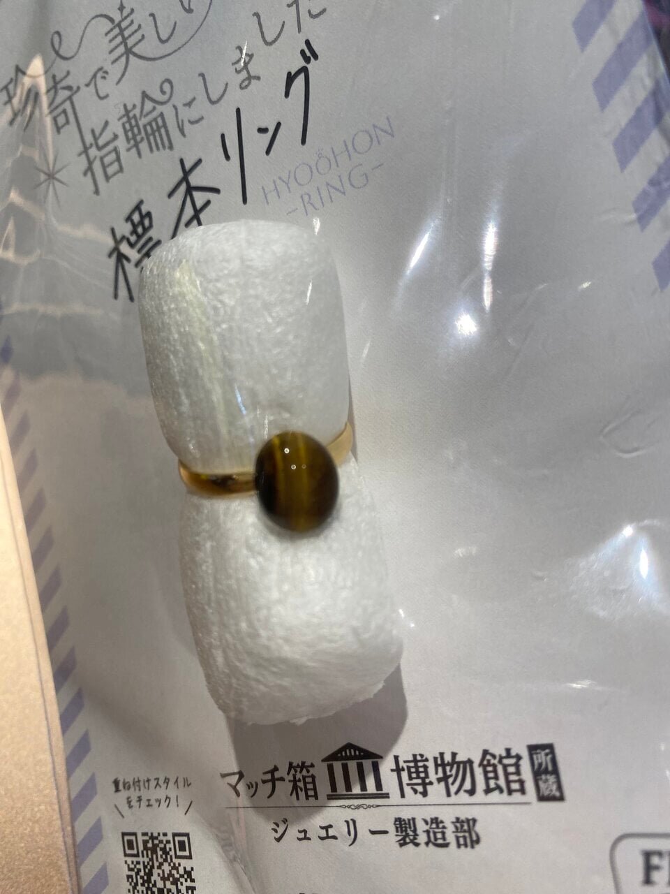 The moment I walked in, my eyes were drawn to the specimen ring of the Matchbox Museum. I was momentarily confused, wondering if it was a "specimen?" or a "ring?" but this is a ring (finger ring) made using real minerals. It’s a ring that makes you want to collect it like a specimen.