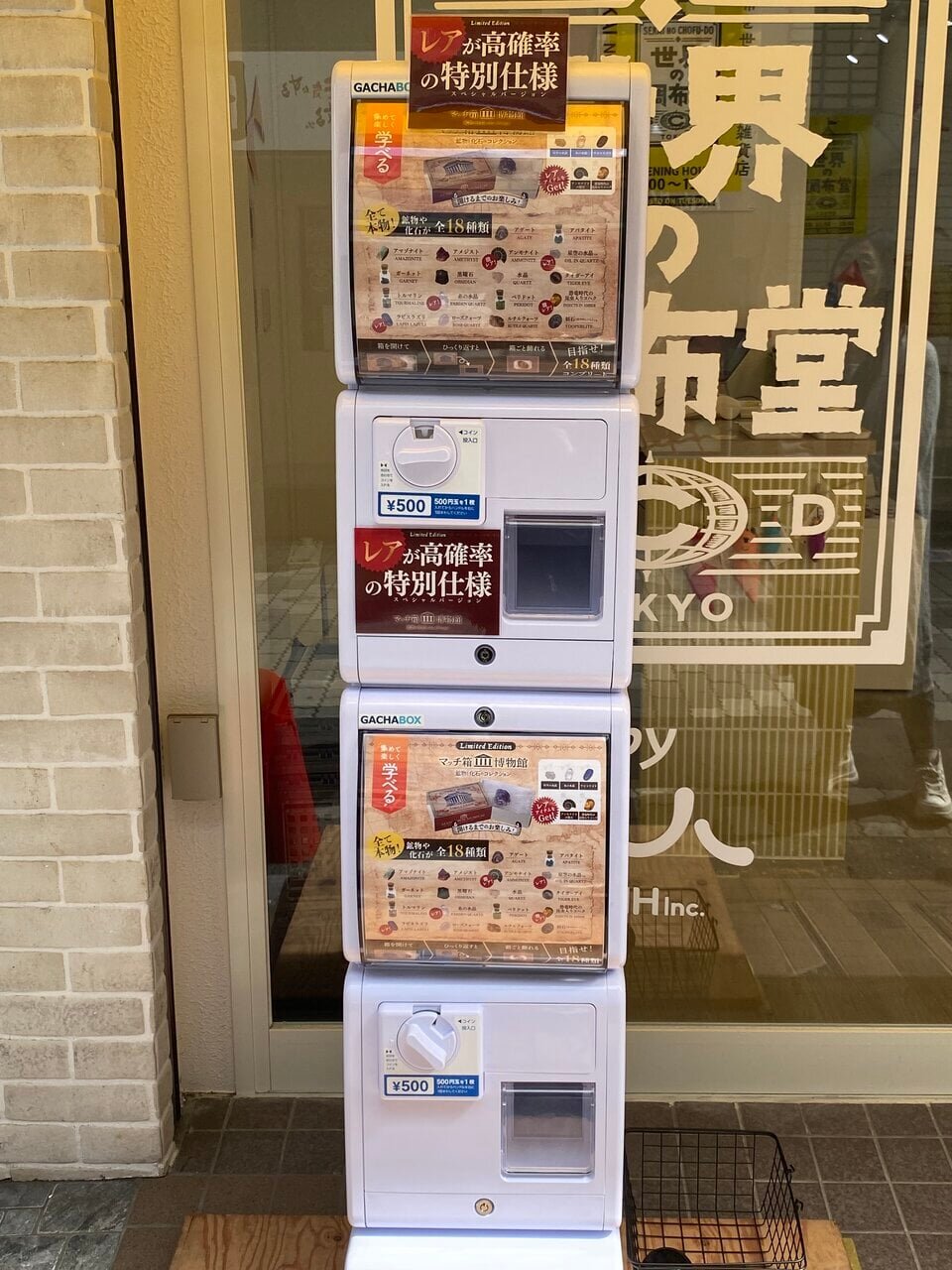 Inside a small box the size of a matchbox, there are real minerals, fossils, and gems like those found in a museum, all packed into the "Matchbox Museum." It is said that there are about 130 different types inside, but it's a delightful little box where you can enjoy the surprise of what’s inside until you open it. Due to its popularity and scarcity, I headed to "World Chofu-do" located in Chofu City, Tokyo, to ensure I could get one. It is situated in the Tenjin Street shopping district, where characters from "GeGeGe no Kitaro" greet you at various spots.