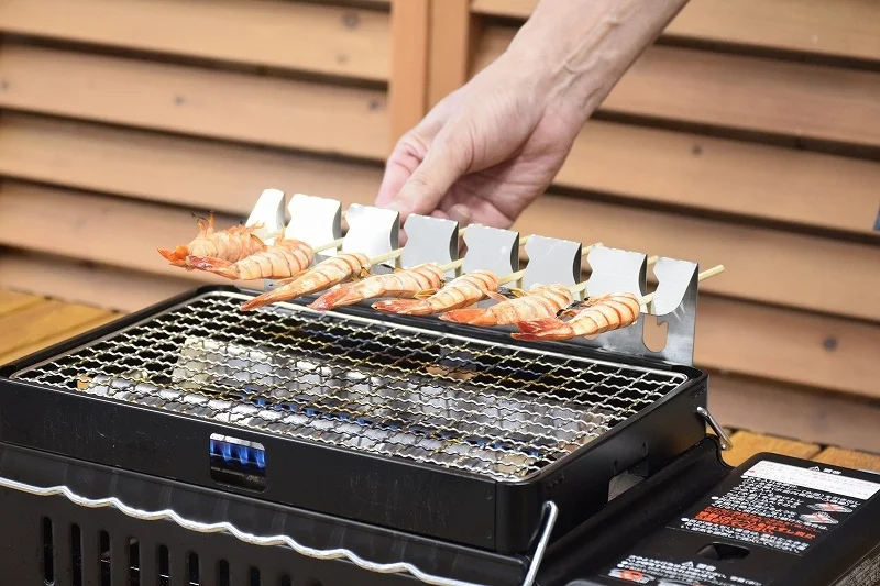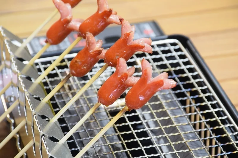 You can enjoy the “entertainment grilling” where the legs of the octopus sausages open up, creating a visually appealing presentation that whets your appetite just by looking at it. While adjusting the doneness, everything comes out delicious until the last bite. It can secure up to 7 skewers at a time, and if you use two units, it’s designed for larger groups.