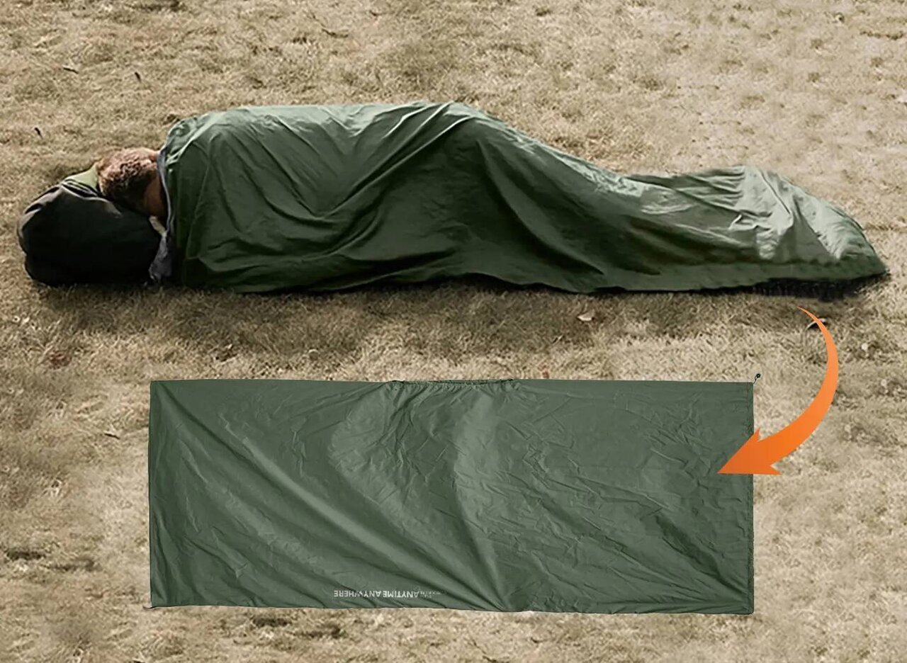 Size: When laid flat: approx. 145×200cm, When stored: approx. 8×8×20cm, Rain Poncho: approx. 100×145cm, Sleeping Bag: approx. 72.5×200cm