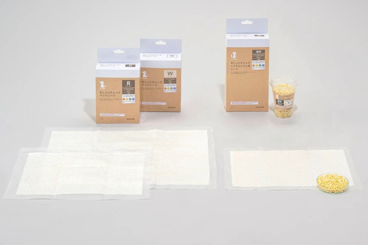 I want my pet, a member of the family, to always be healthy. The "Urine Check Series" responds to such feelings. The pH level of the urine changes the color of the sheets or sand, allowing you to visually check the health of your dog orcat. The lineup includes pet sheets for dogs and system toilet sheets for cats, as well as sand-type cat litter. By simply replacing the usual toilet supplies, it seems easy to make health management a habit.