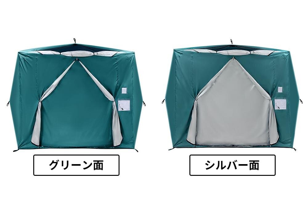 The interior utilizes a breathable fabric and mesh two-layer structure. The ceiling and side ventilation windows release trapped heat and humidity, allowing for comfortable prolonged use. The entrance features a flat design with minimized thresholds, allowing for smooth entry and exit even with a wheelchair or while carrying luggage. It is designed to be user-friendly for everyone with its universal design.