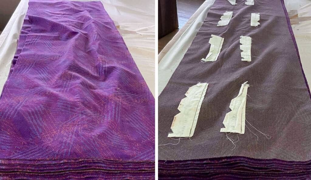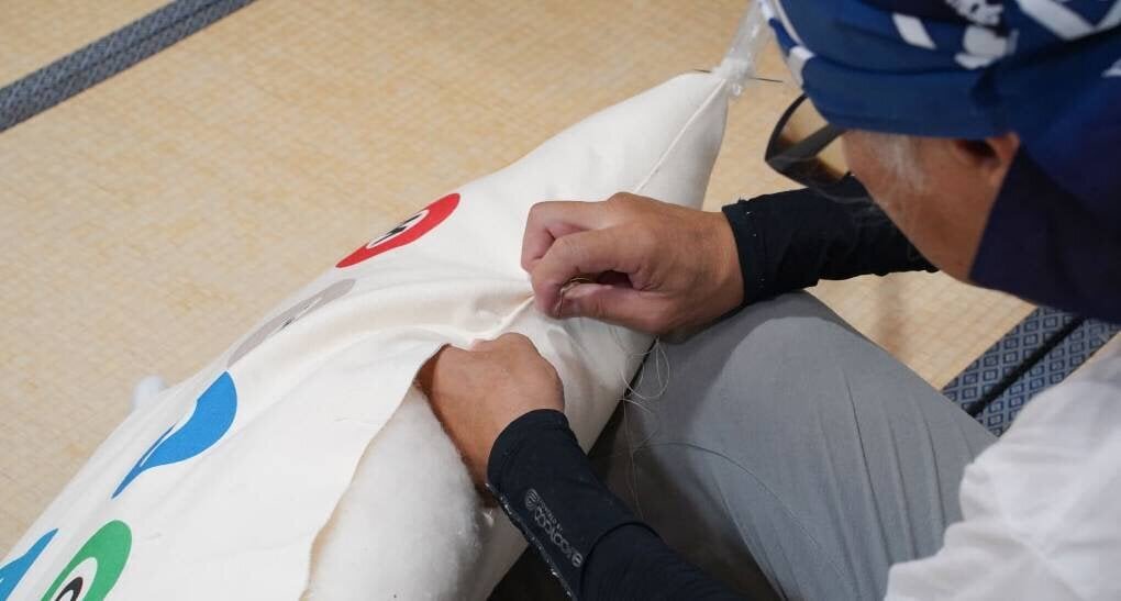 The process of turning it into a cushion is also a key point. Normally, the seat fabric would be discarded, but it is carefully collected and cleaned one piece at a time.