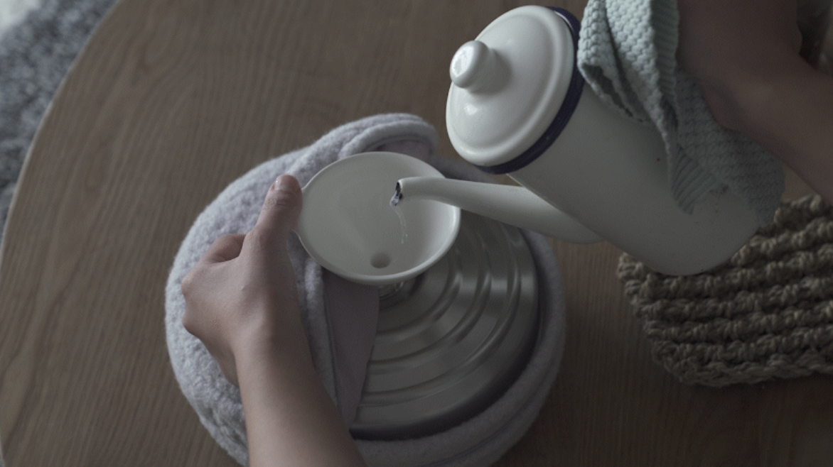 When using it, simply place the main unit inside the cover, use the attached funnel to pour in hot water, and then close the lid and zip it up. You can create a hot water bottle without directly touching the heated main unit, so there's no worry of burns or the need for troublesome preparation. This little bit of extra effort can be seen as the unique "enjoyment" that only a hot water bottle offers.