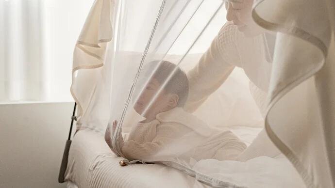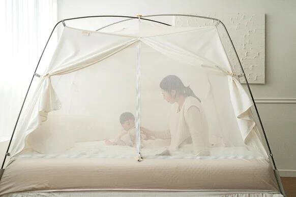 I'm worried about my child rolling over and falling off the bed while sleeping together... That's when I found the "Bymama Bed Guard Heating Tent." Just attach it to the bed, and it prevents the child from falling off, allowing them to stay cozy inside the tent while also being energy-efficient. It’s made of mesh material, so I can see inside and use it with peace of mind.