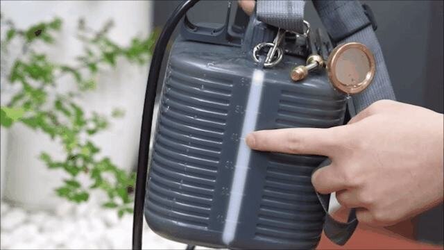 The main body has a large-capacity 6L tank. Since it holds a lot, there's no need to go back and fill it up multiple times, nor do you need to stretch the hose too much. It comes with a handle and strap, making it easy to carry around. The sides of the tank and the cap have measurements that are useful for measuring the amount of water and chemicals in the tank.