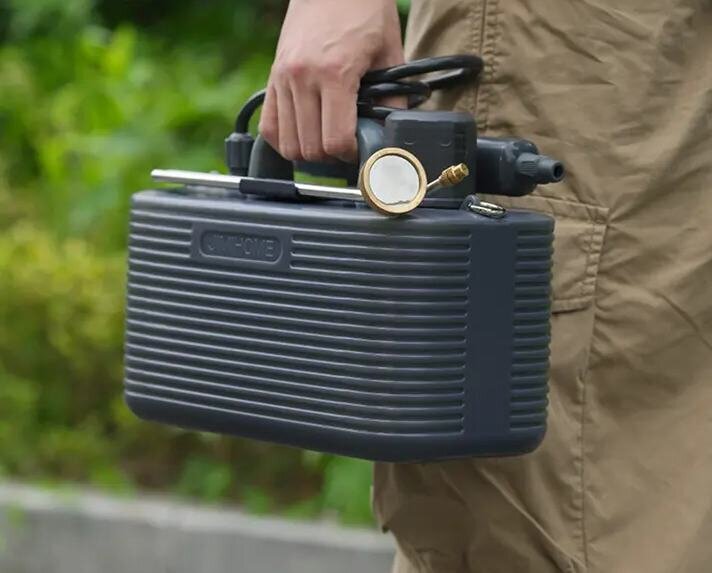The storage is a completely integrated all-in-one design that fits entirely into the main body. There is no hassle of winding the hose, and once you're done using it, you can simply put it away, making it easy to carry. It's compact and doesn't take up much space, so you can place it quickly in easily accessible spots like your entrance or under the eaves.